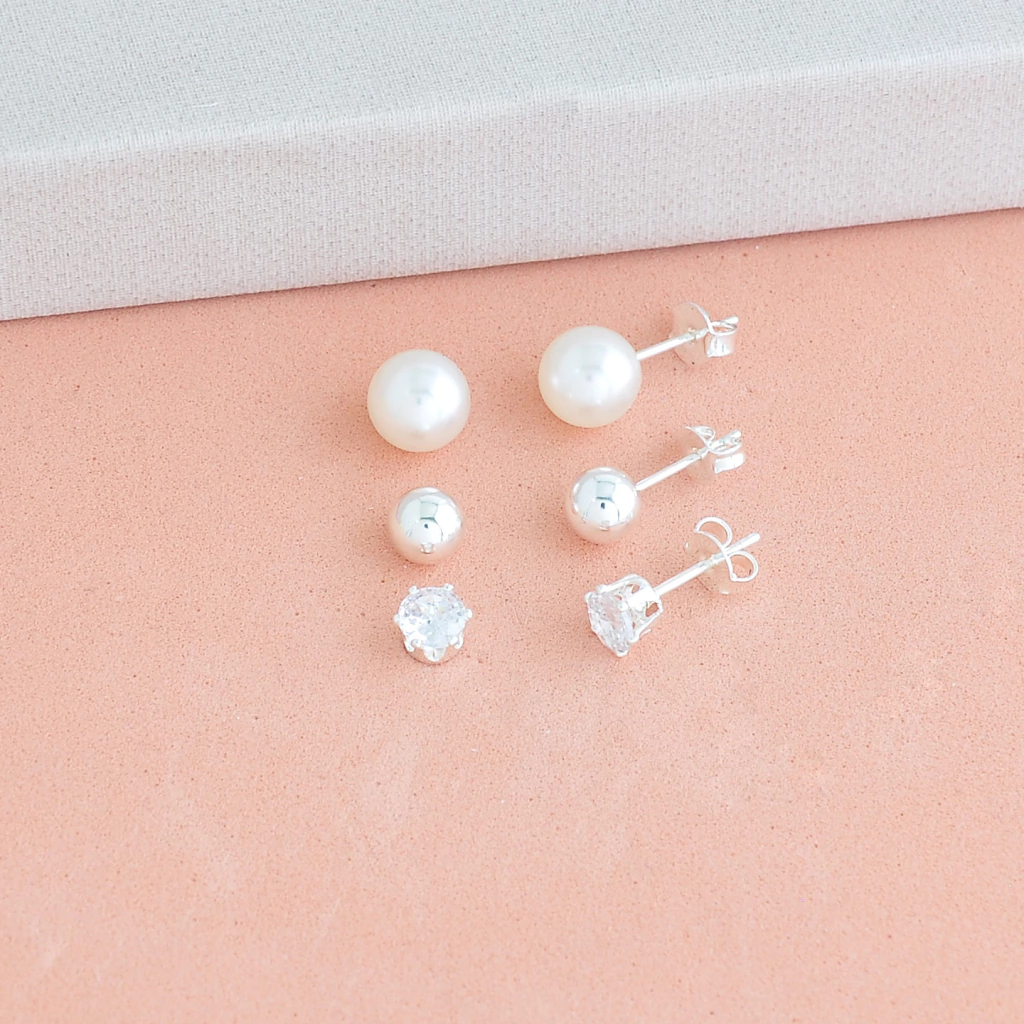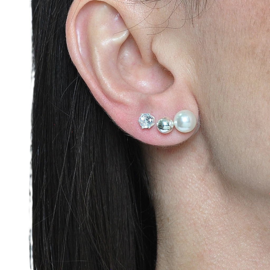 Brinco Kit Trio Perola Bola Ponto de Luz Banhado a Prata 925