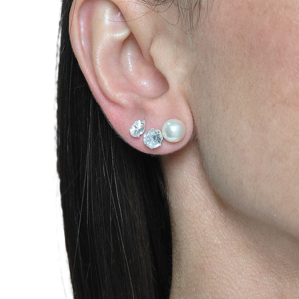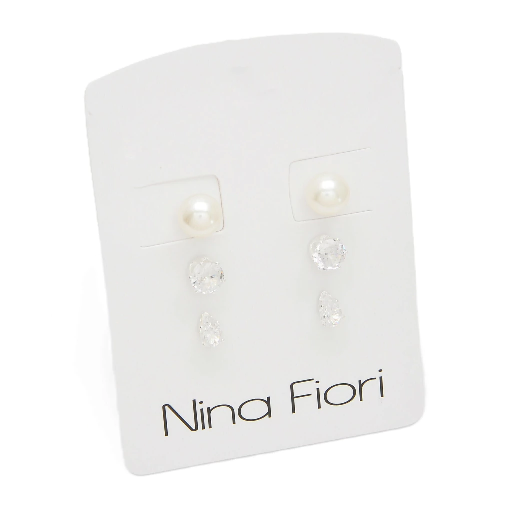 Brinco Kit Trio Perola Ponto de Luz Gota Banhado a Prata 925