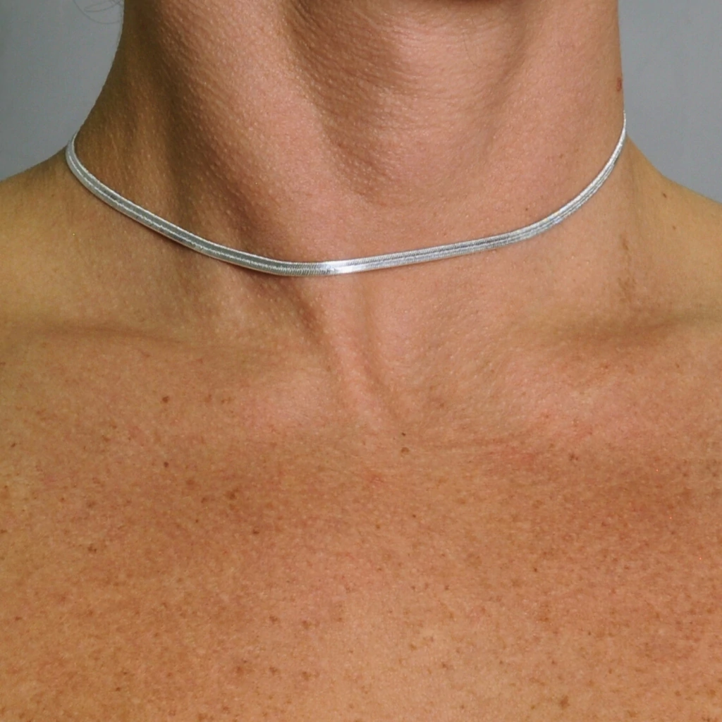 Colar Chocker Feminino Fita Laminado Banhado a Prata 925 35cm