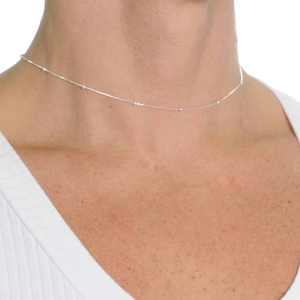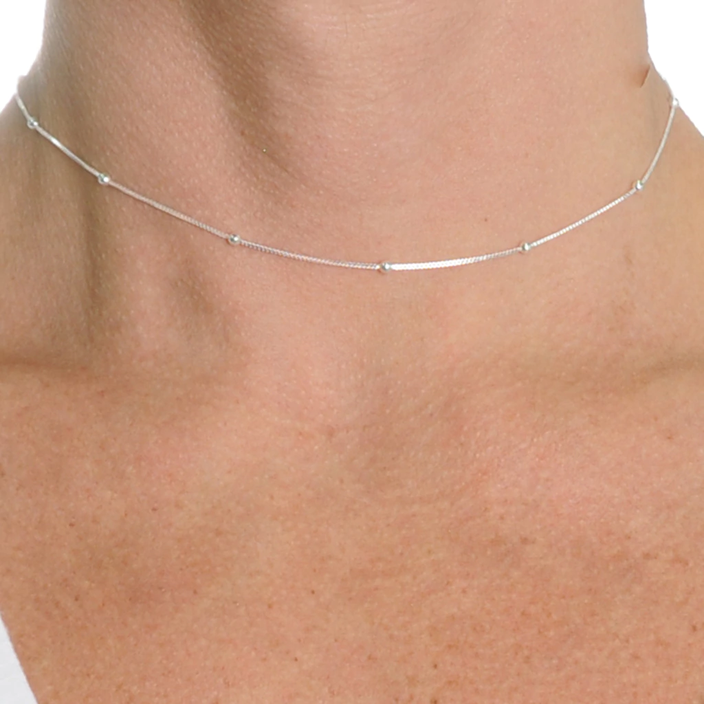 Colar Choker Feminino com Bolinhas Banhado a Prata 925 35cm