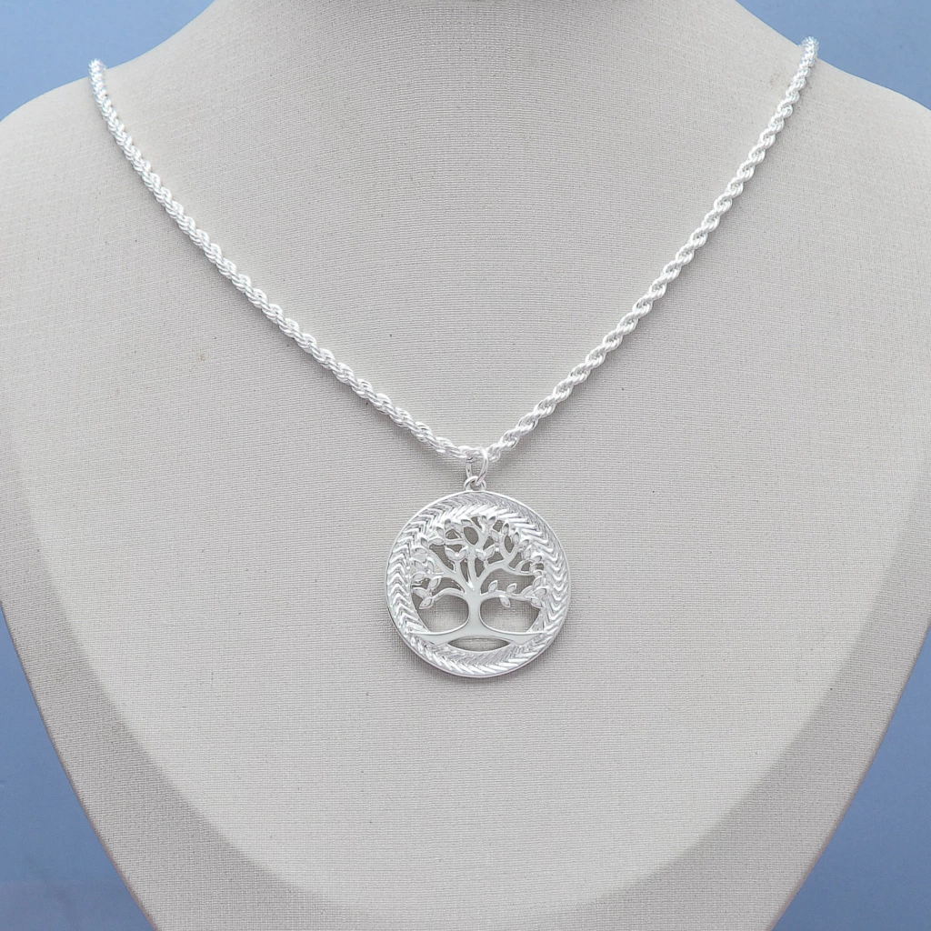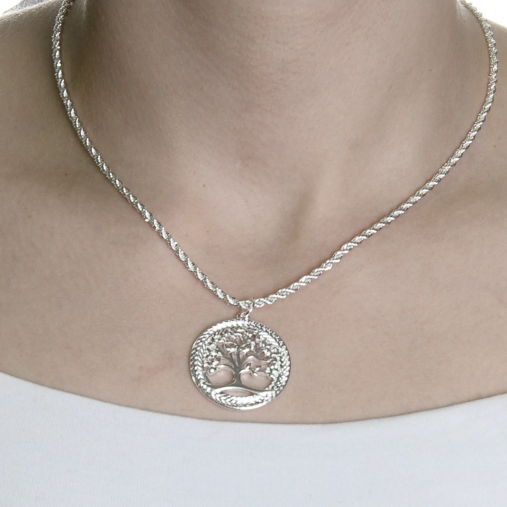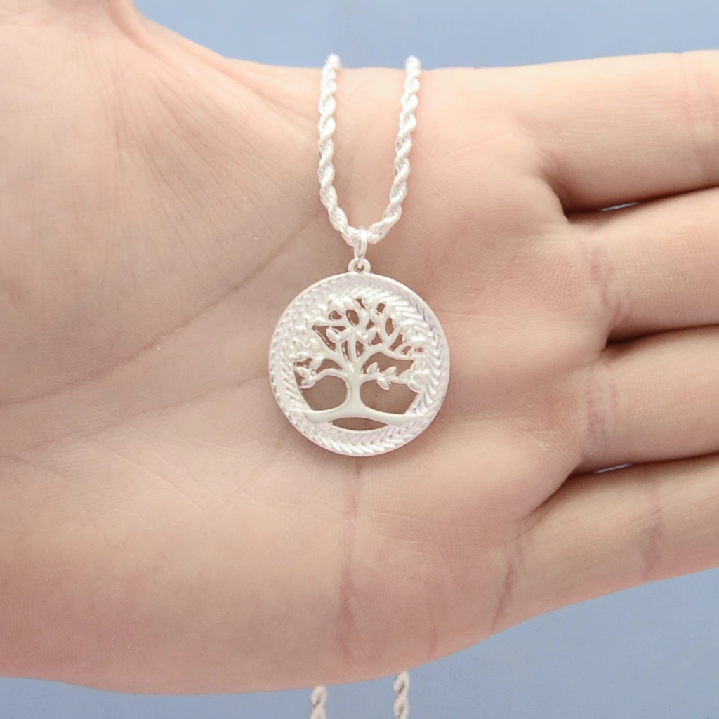 Colar Cordão Baiano Pingente Arvore da Vida Banhado a Prata 925