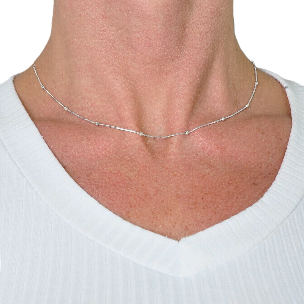 Colar Corrente Feminino com Bolinhas Banhado a Prata 925 40cm