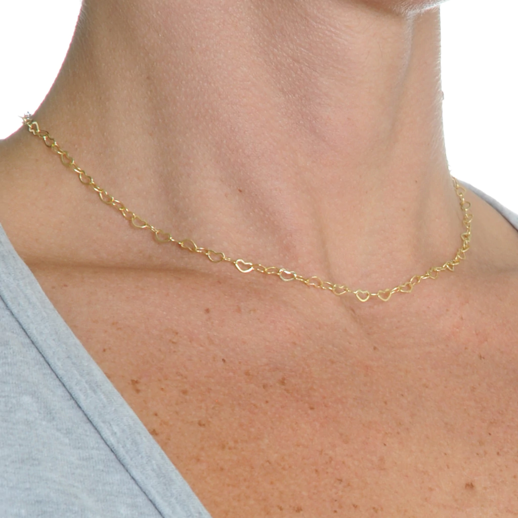 Colar Feminino Elos Corações Banhado a Ouro 18k 40cm