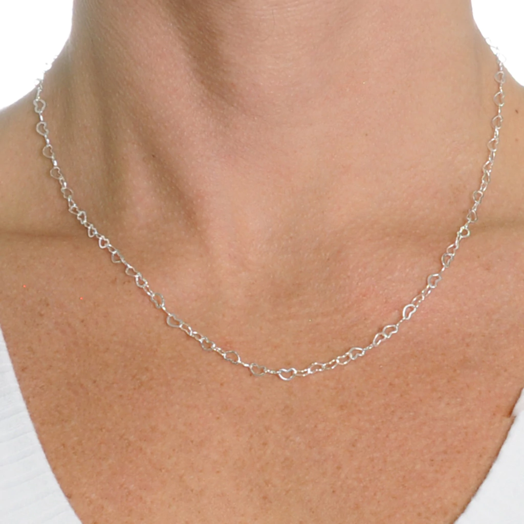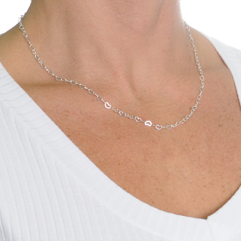 Colar Feminino Elos Corações Banhado a Prata 925 45cm