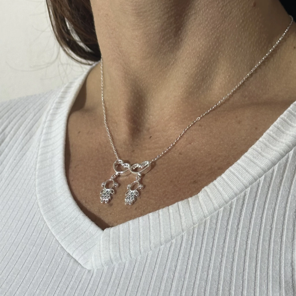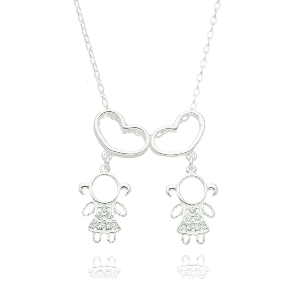 Colar Filhas Duas Meninas Banhado a Prata 925