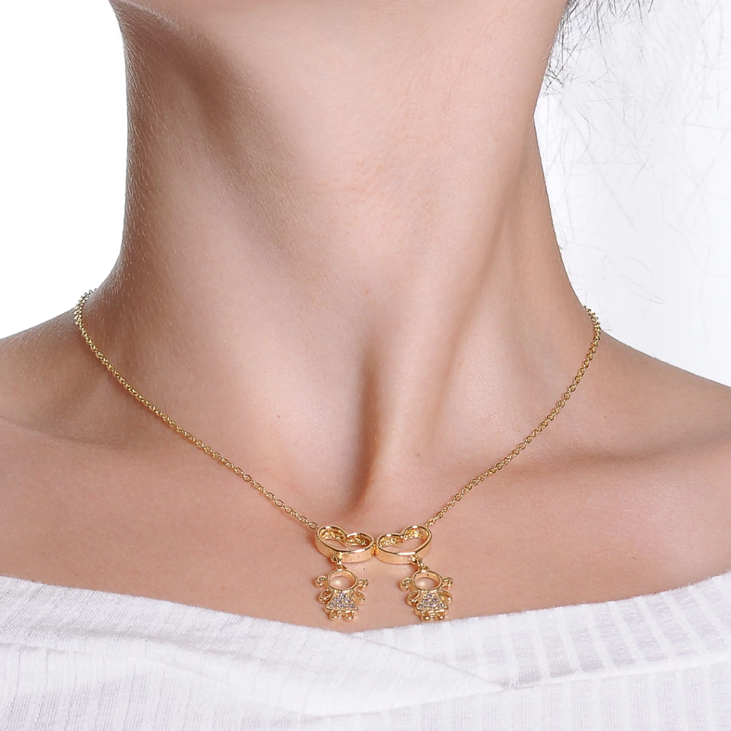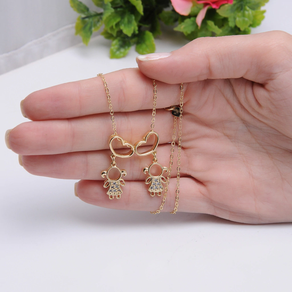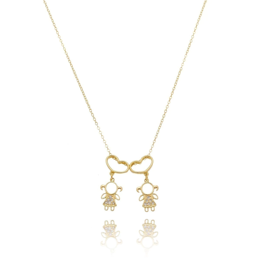 Colar Filhas Duas Meninas Banhado Ouro 18k