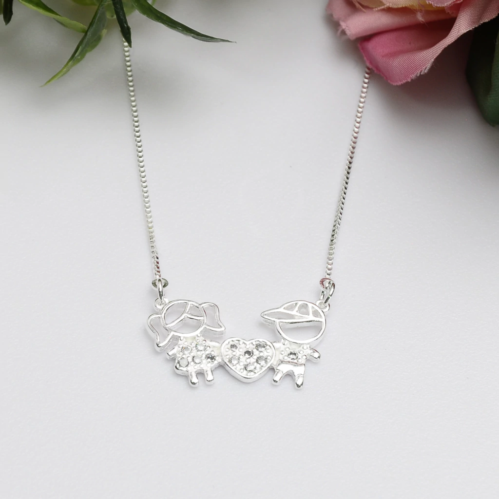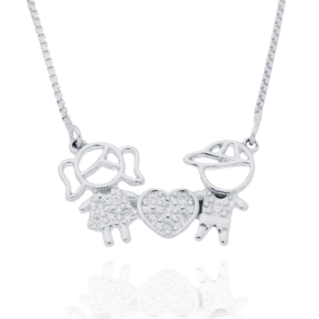 Colar Filhos Casal Menino e Menina Cravejado Banhado a Prata 925