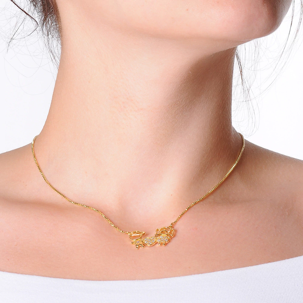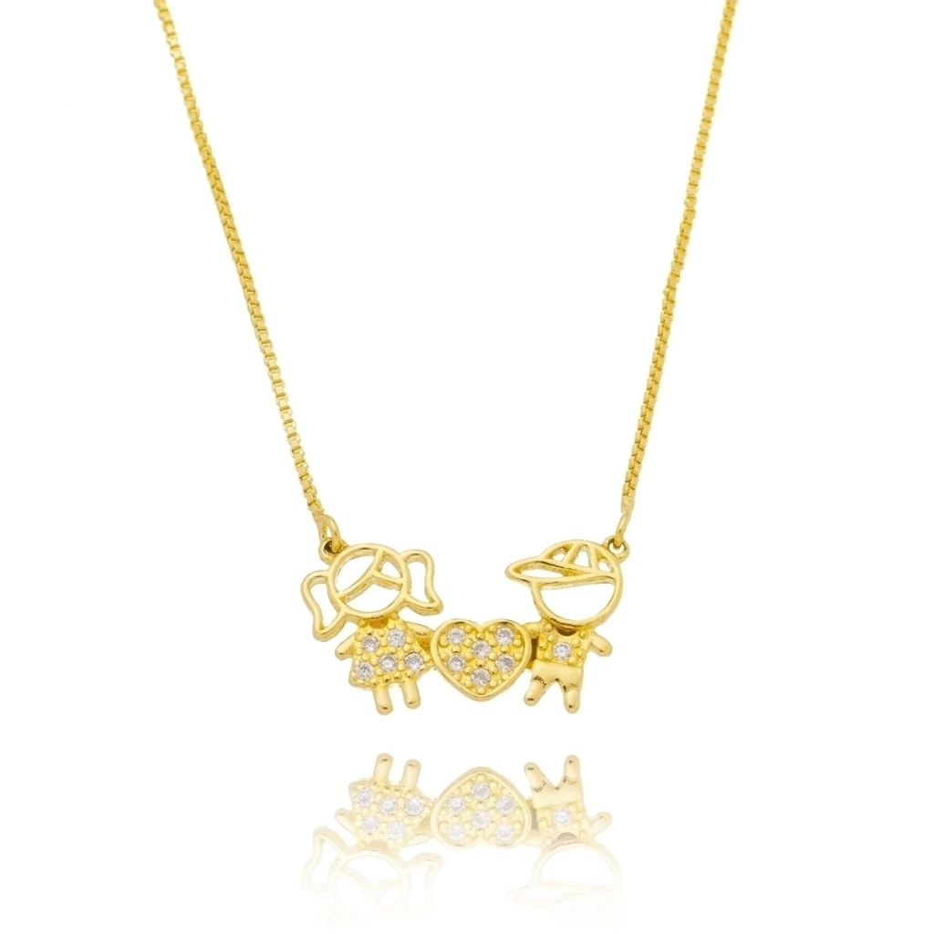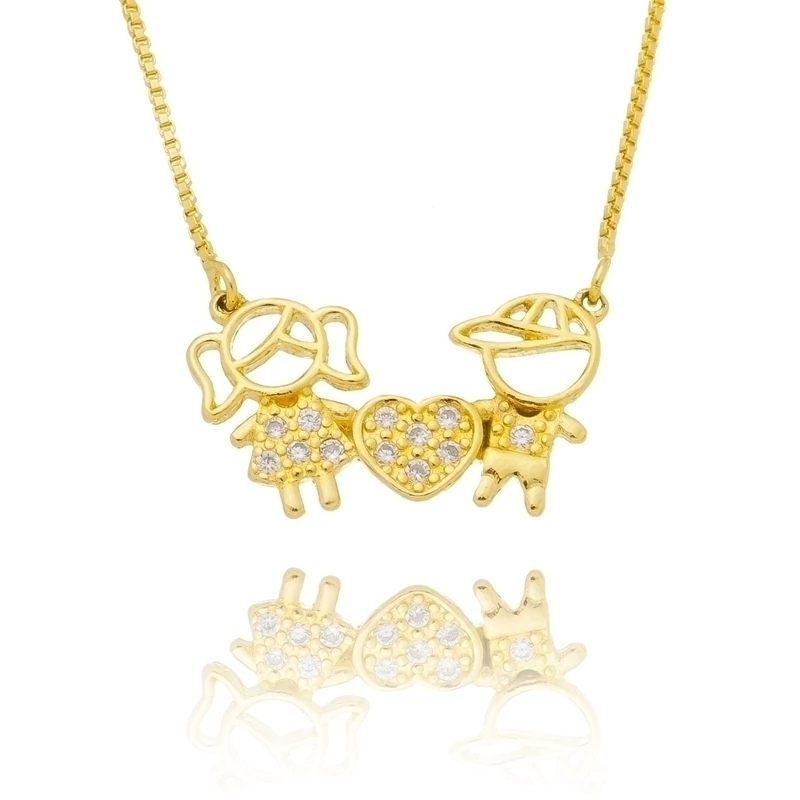 Colar Filhos Casal Menino e Menina Cravejado Banhado Ouro 18k