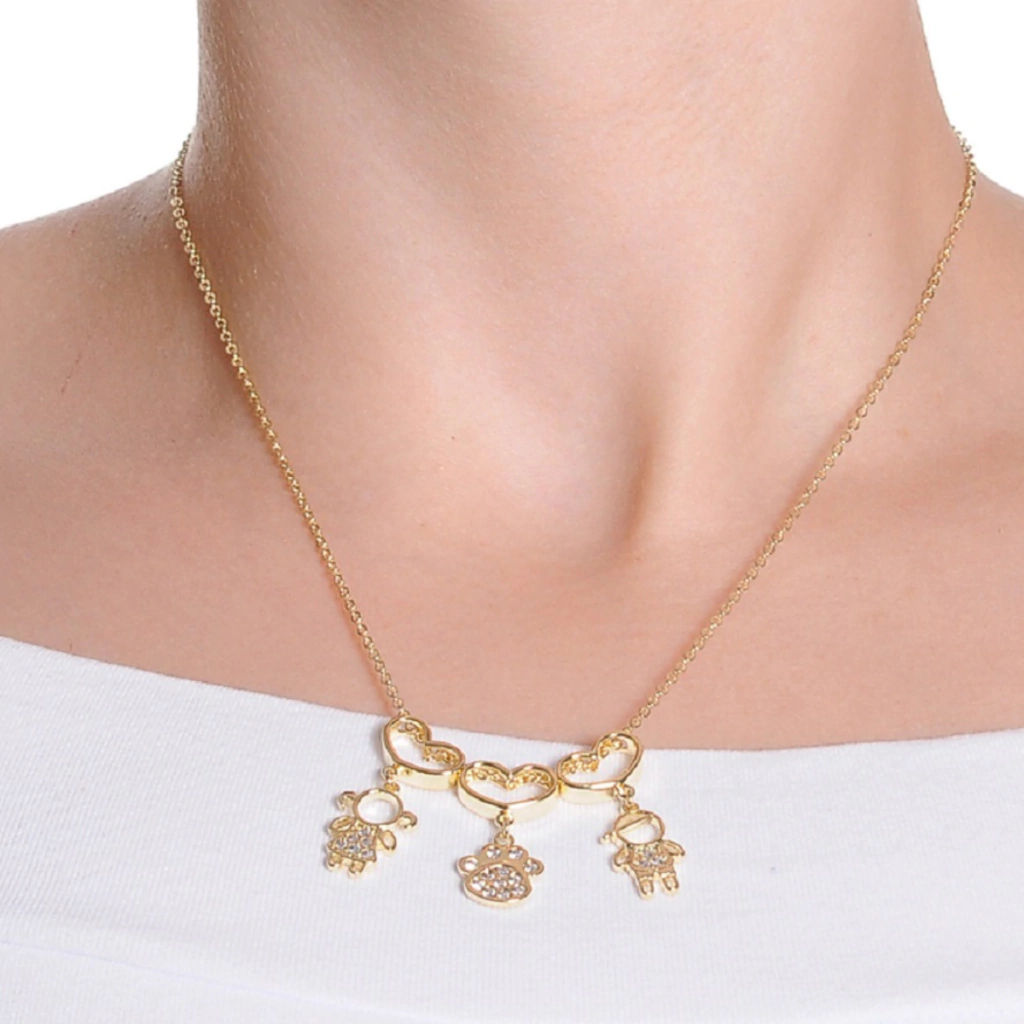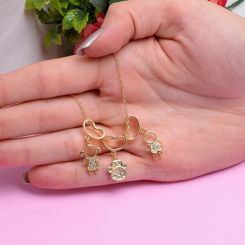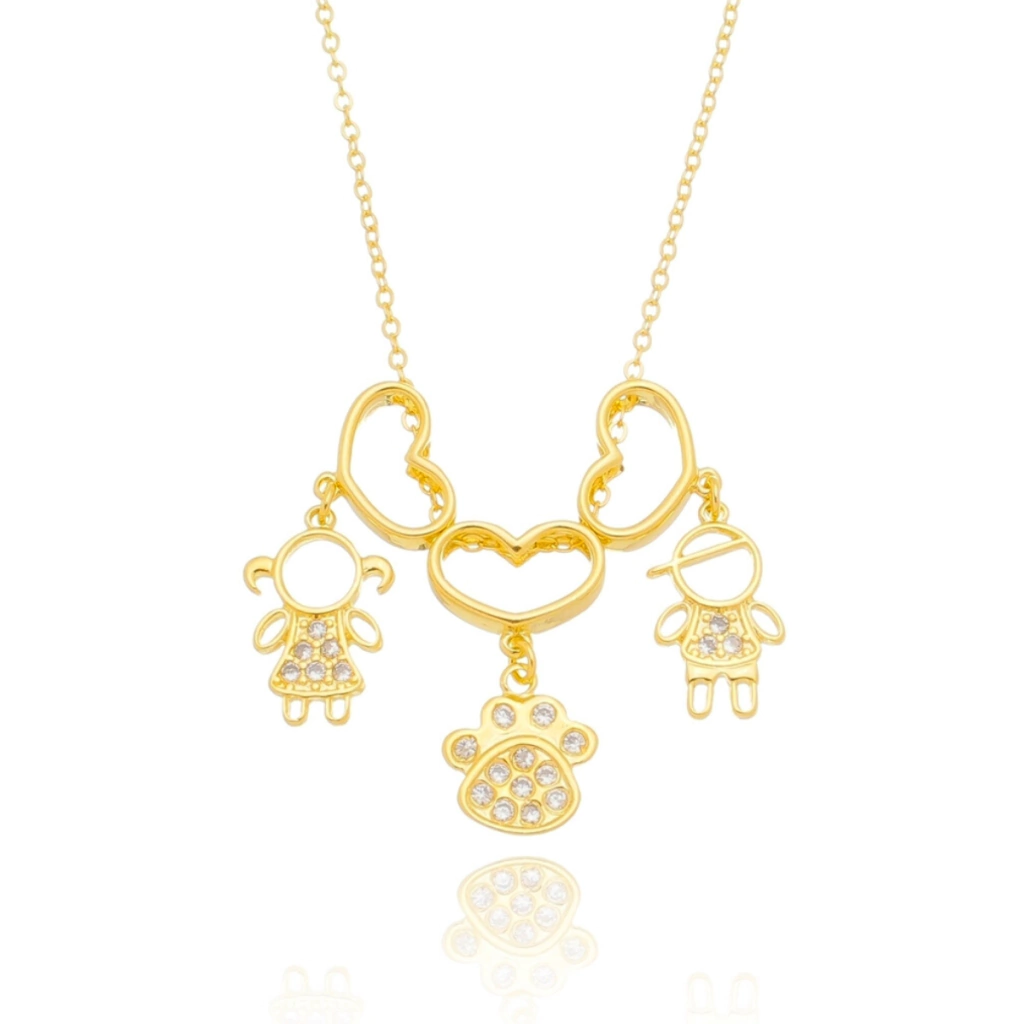 Colar Filhos Casal Menino E Menina E Patinha De Cachorro Banhado Ouro 18k