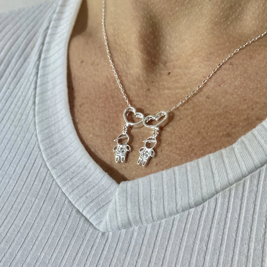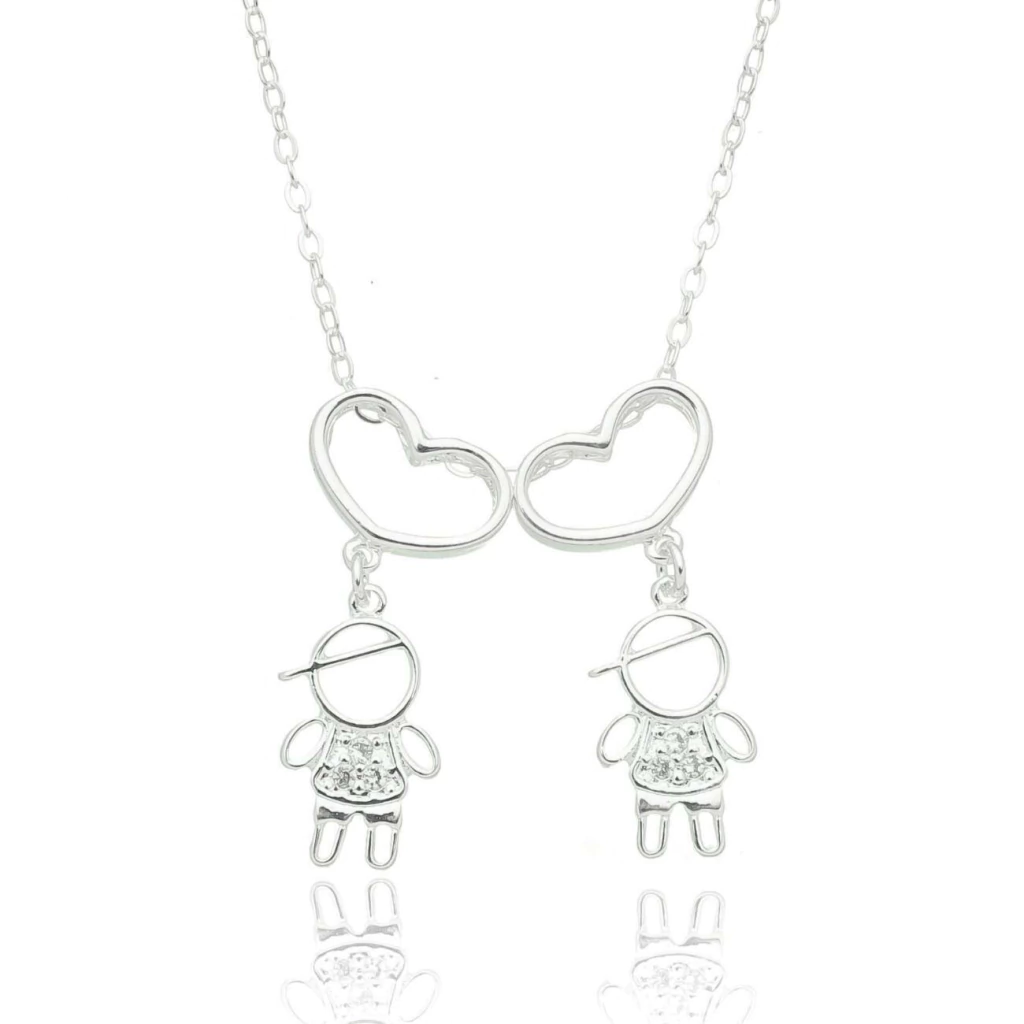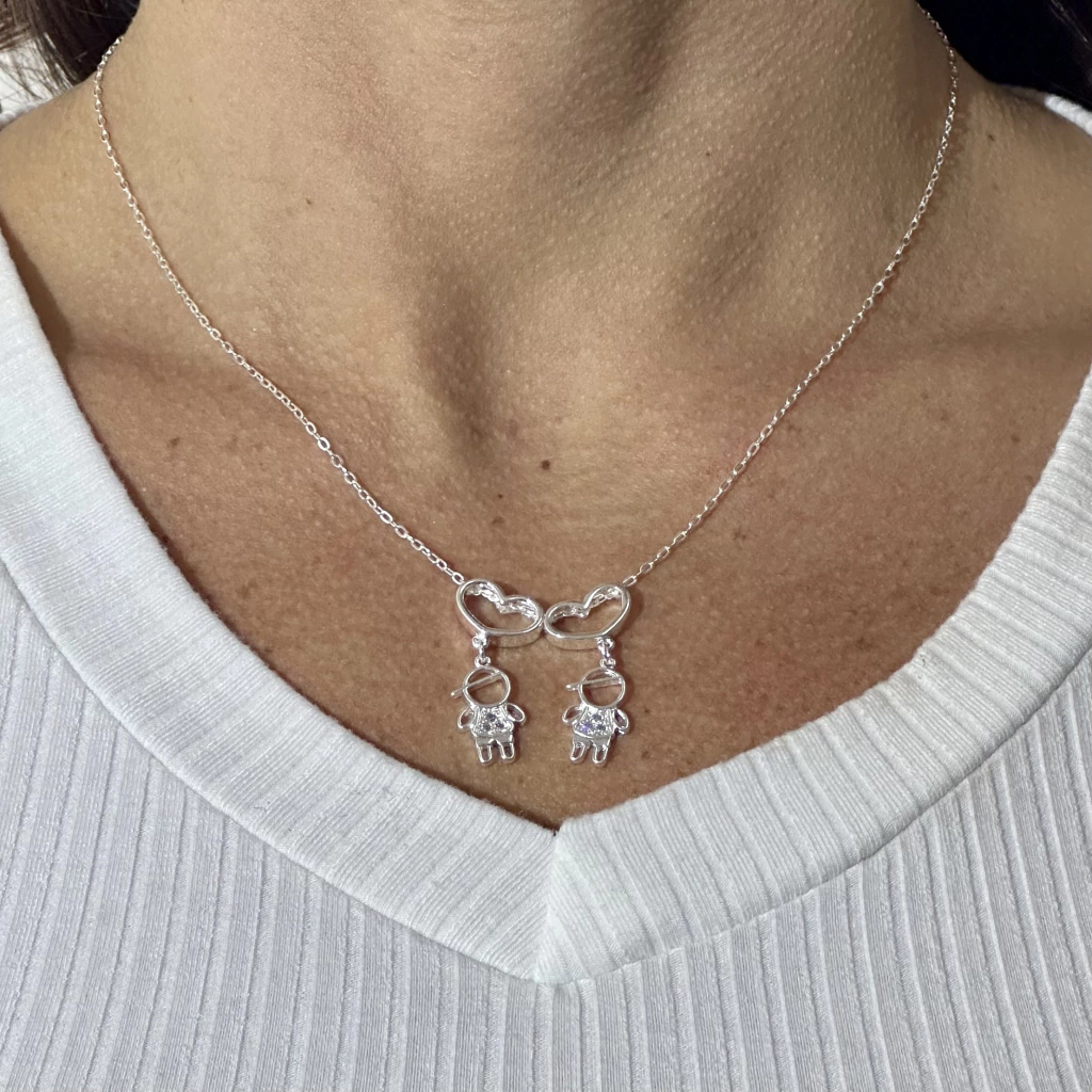 Colar Filhos Dois Meninos Banhado a Prata 925