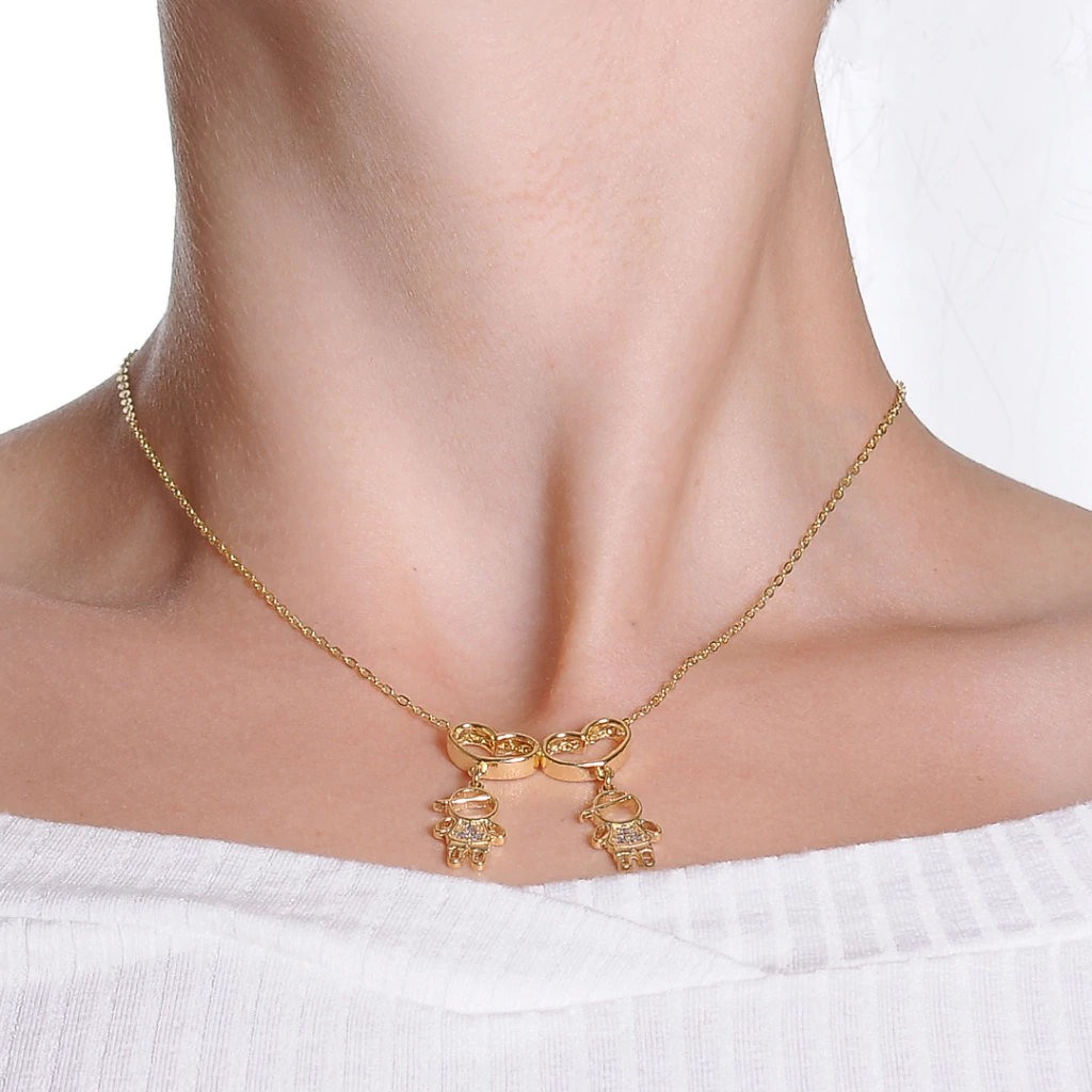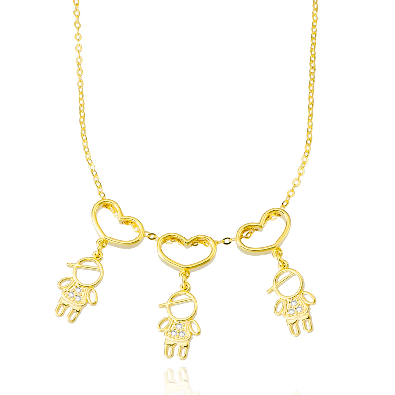 Colar Filhos Três Meninos Pingentes Banhado Ouro 18k