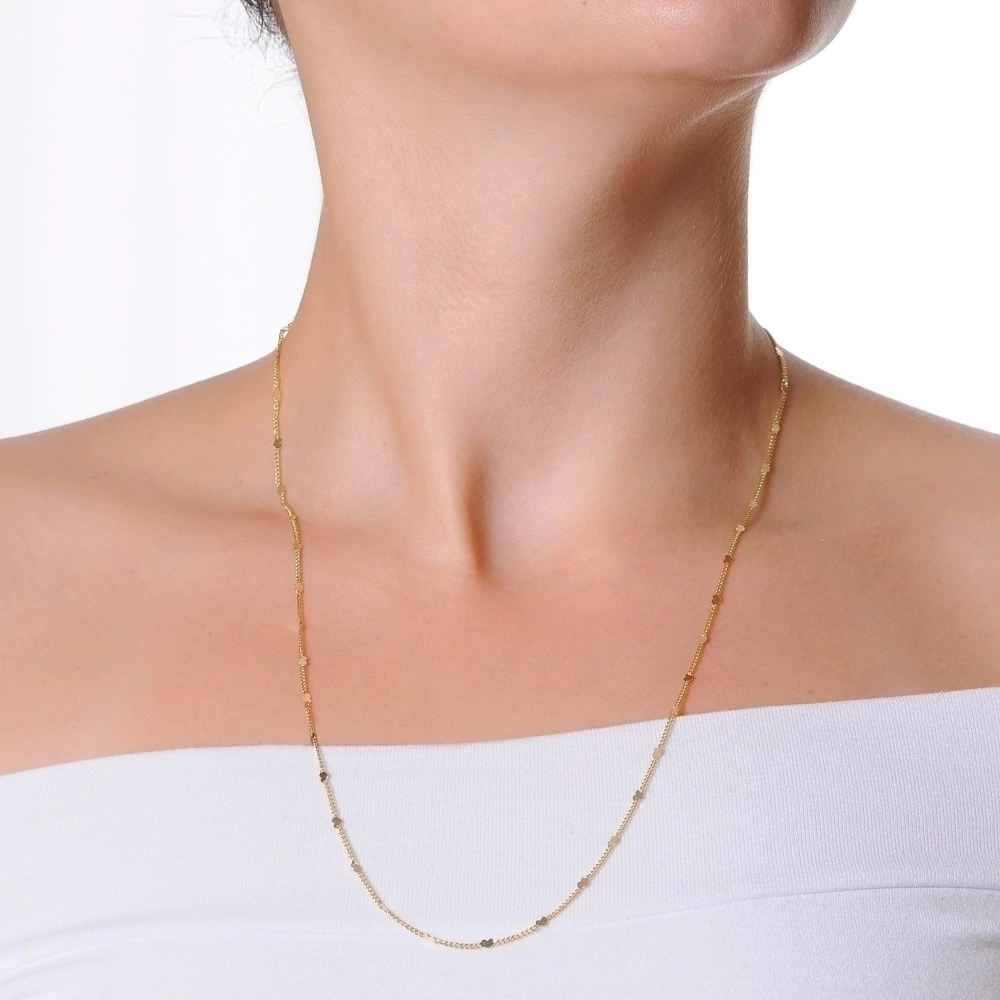 Colar Longo Corrente Detalhes Coração Banhado a Ouro 18k 60cm