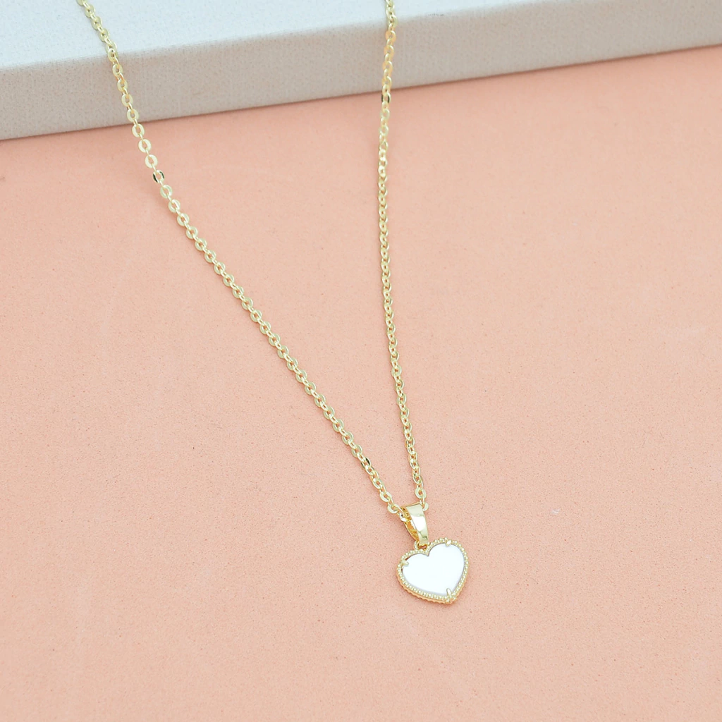 Colar Pingente Coração Branco Banhado a Ouro 18k