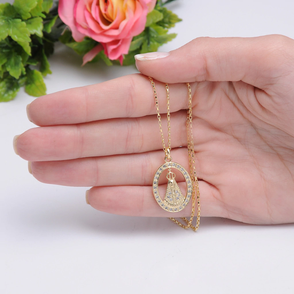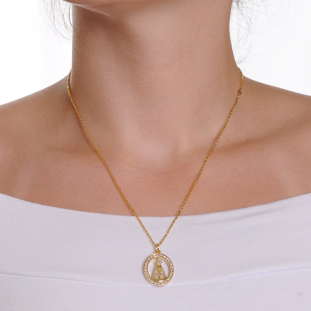 Colar Pingente Nossa Senhora Aparecida Banhado a Ouro 18k