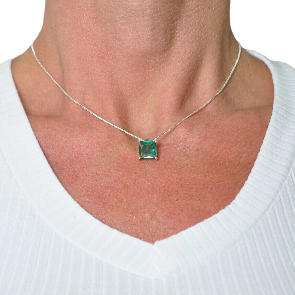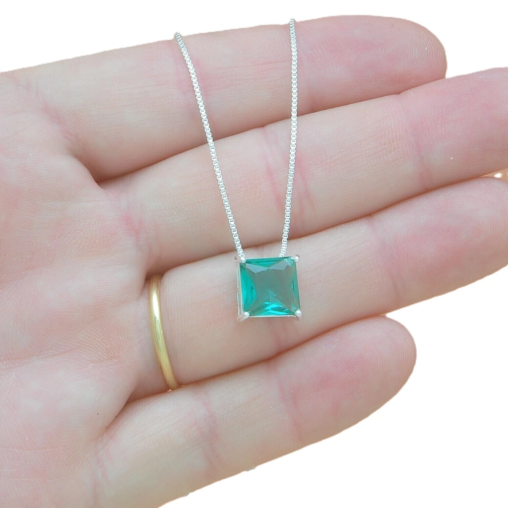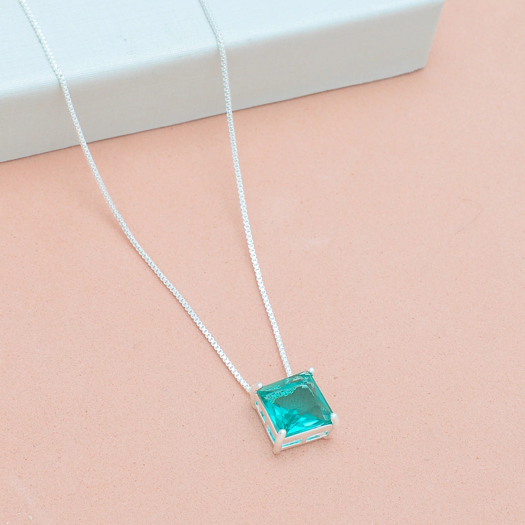 Colar Pingente Quadrado 10mm Verde Banhado a Prata 925