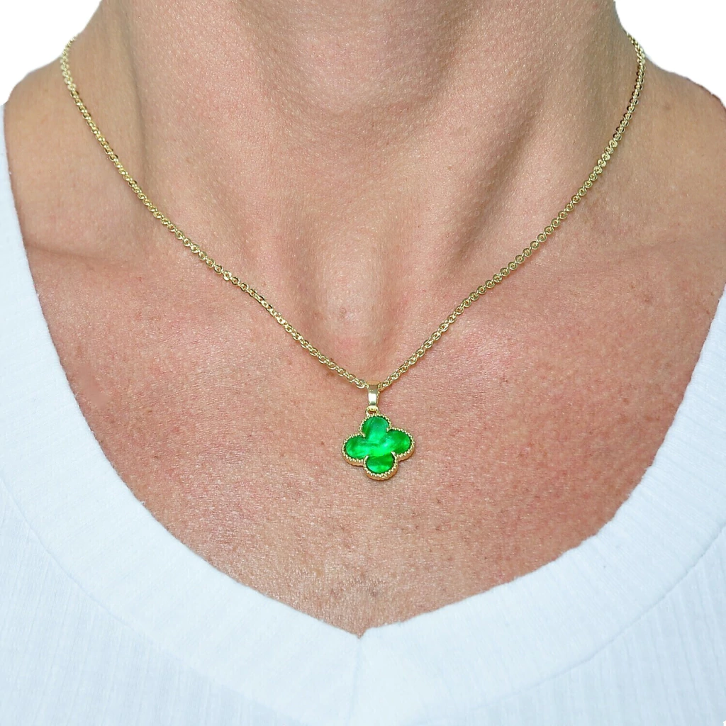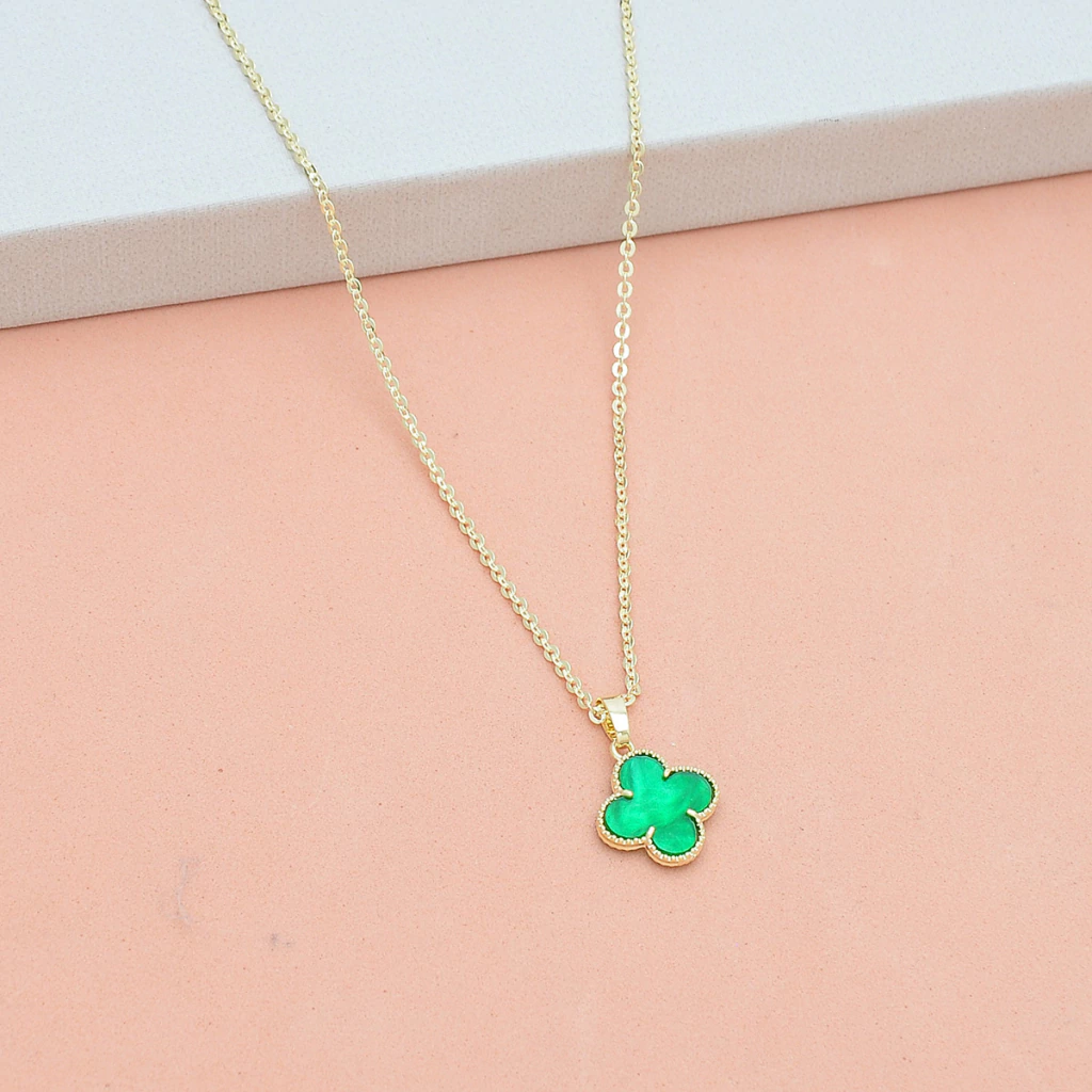 Colar Pingente Trevo Verde Banhado a Ouro 18k