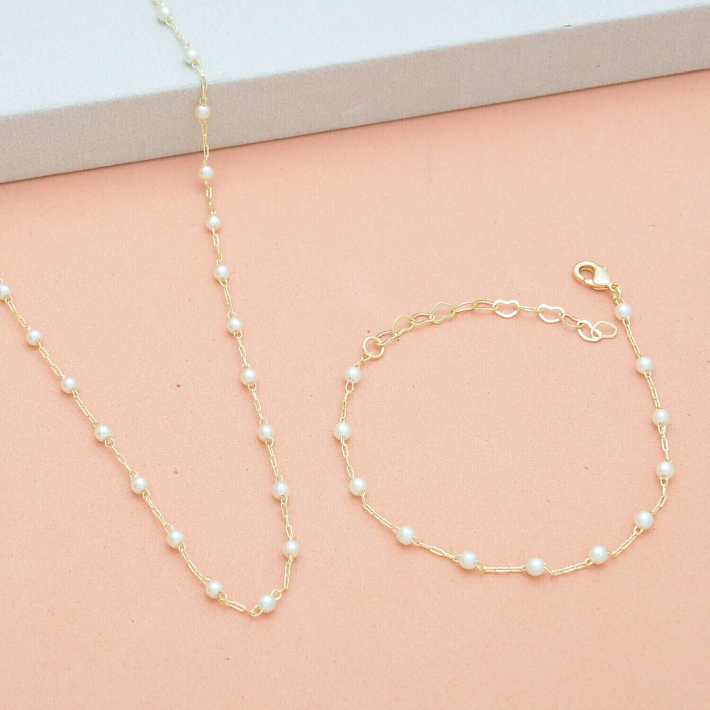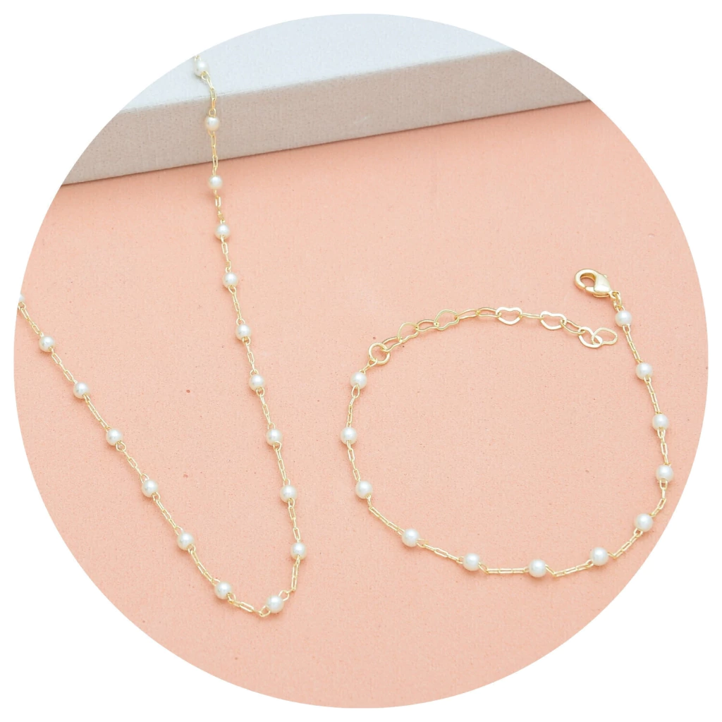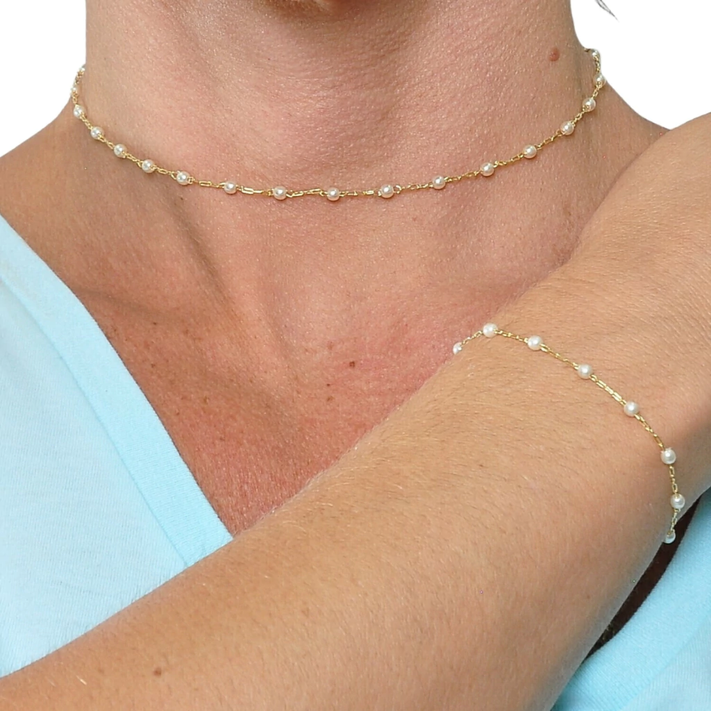 Conjunto Chocker e Pulseira Perolas Banhado a Ouro 18k