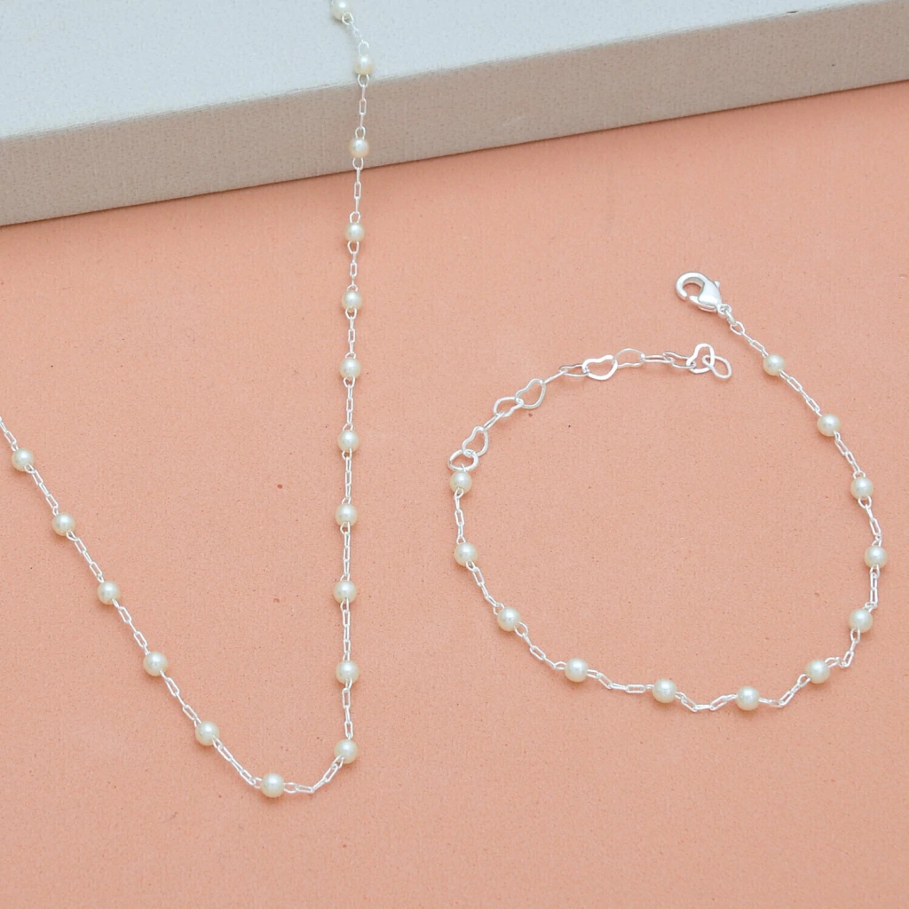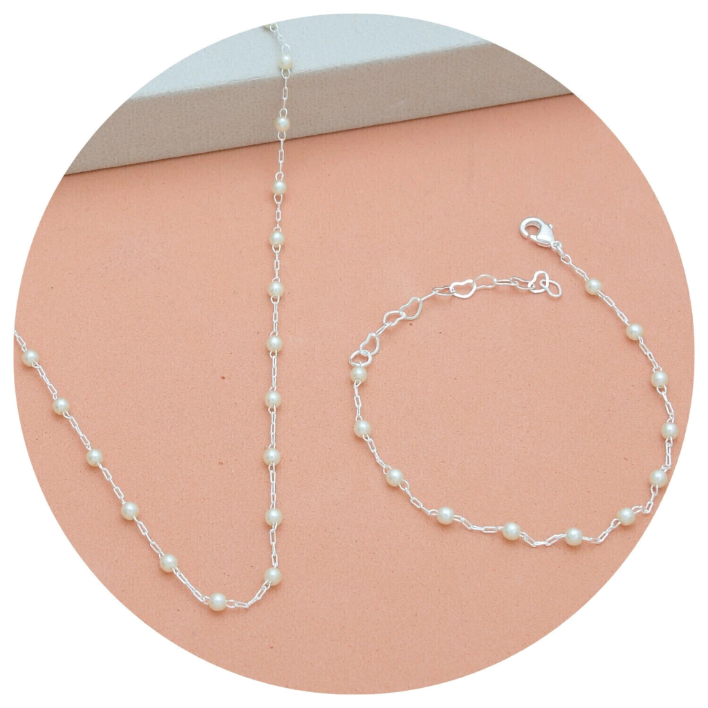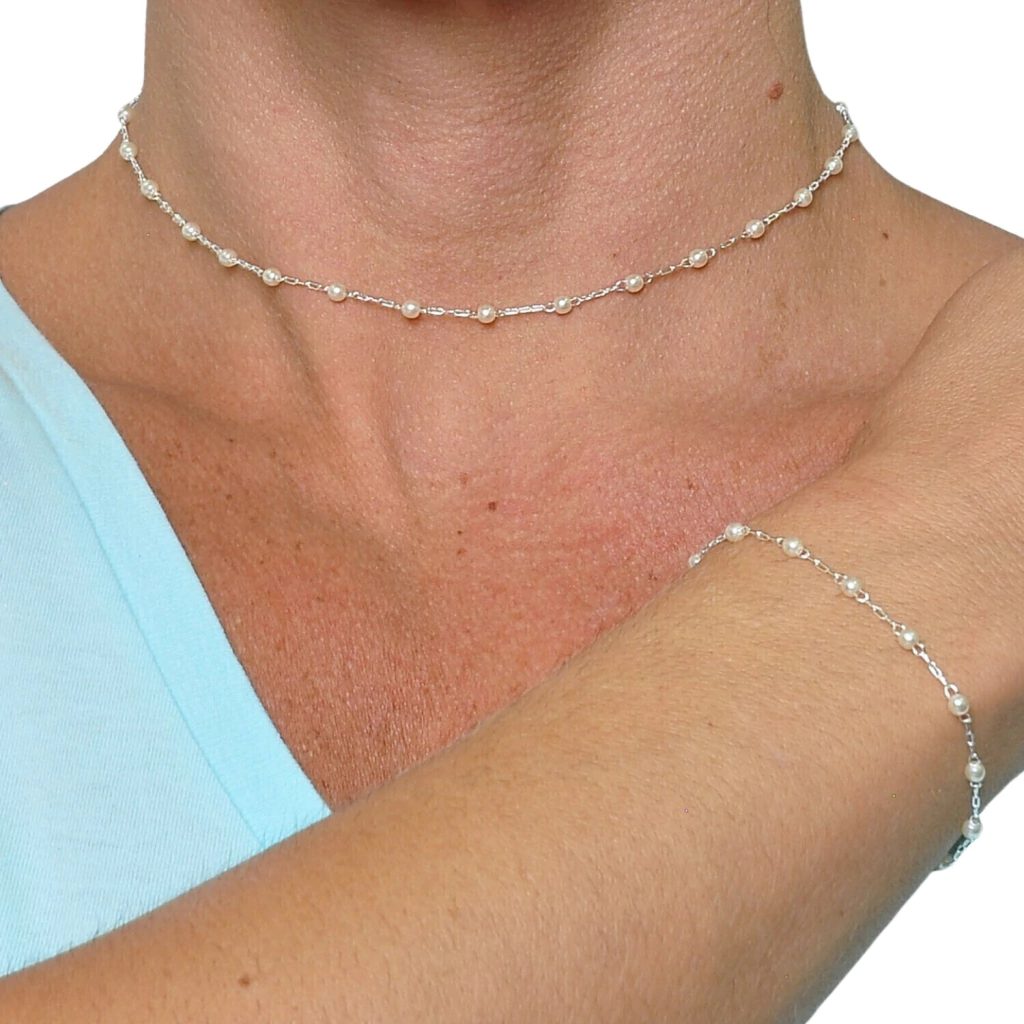 Conjunto Chocker e Pulseira Perolas Banhado a Prata 925