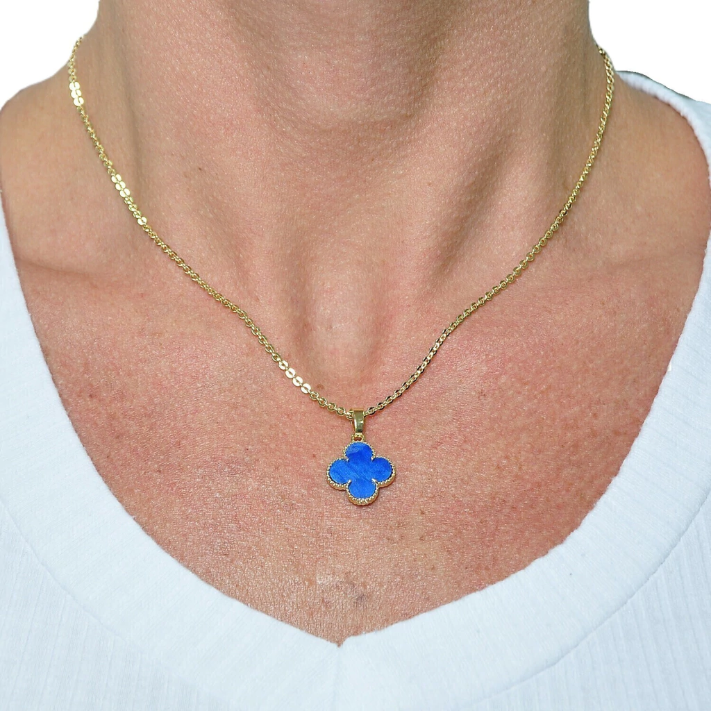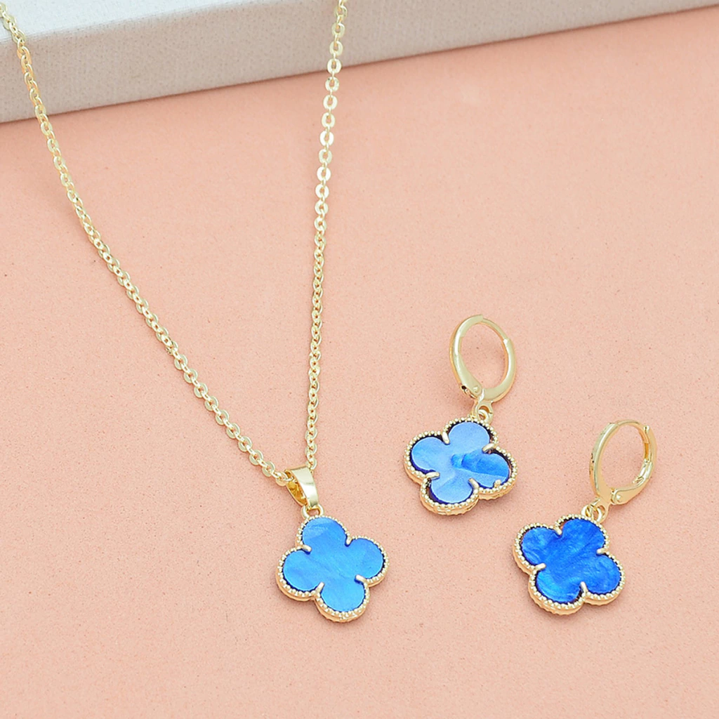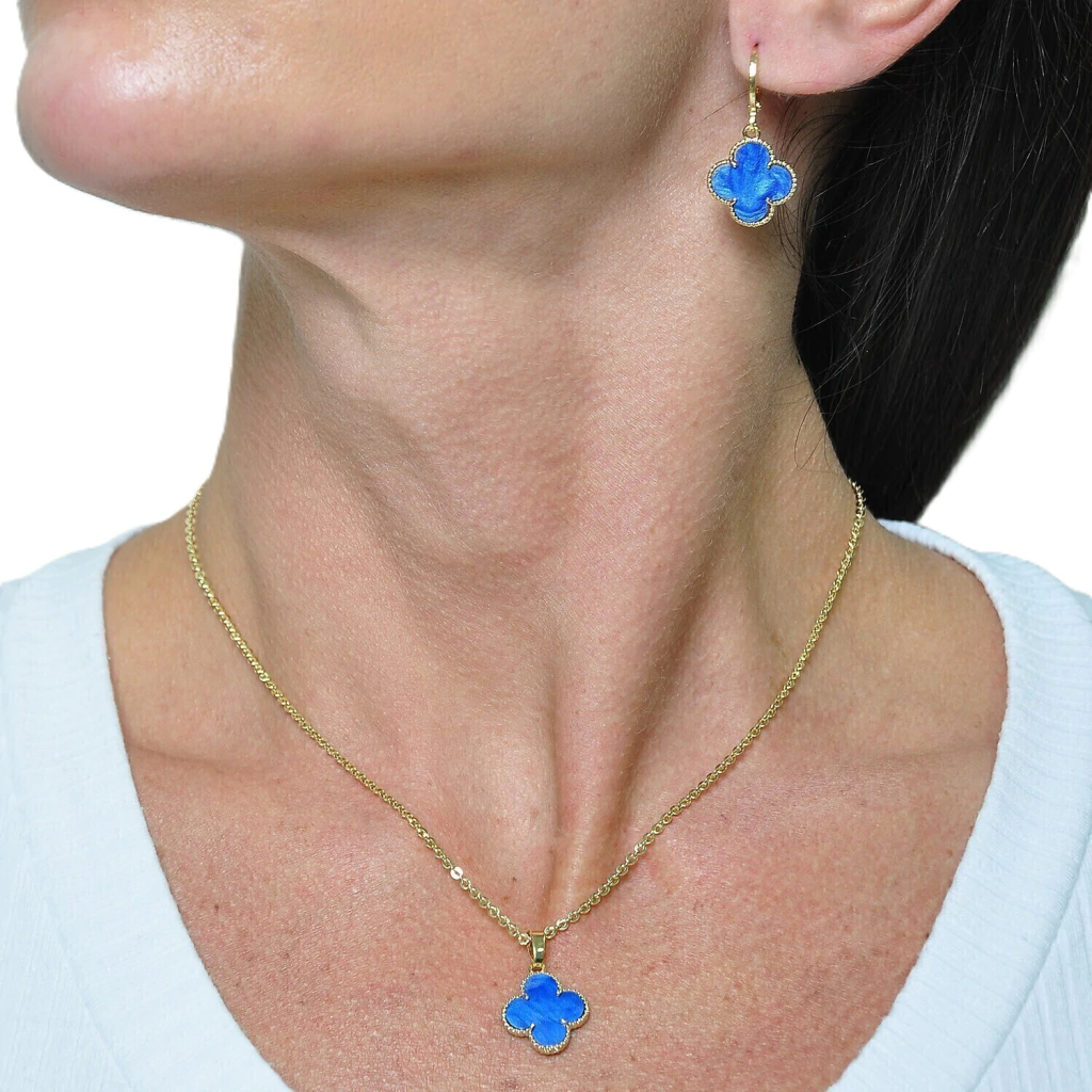 Conjuto Colar e Brinco Trevo Azul Banhado a Ouro 18k