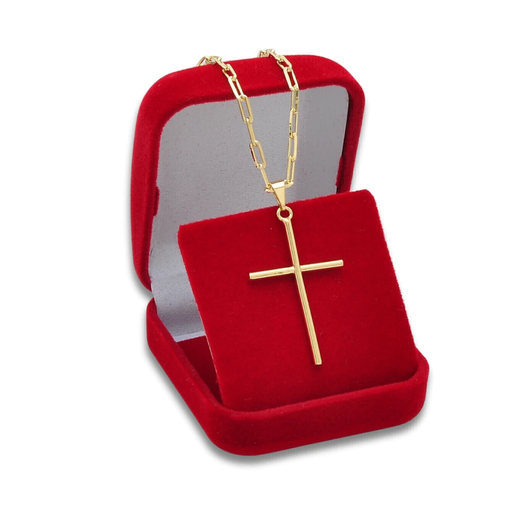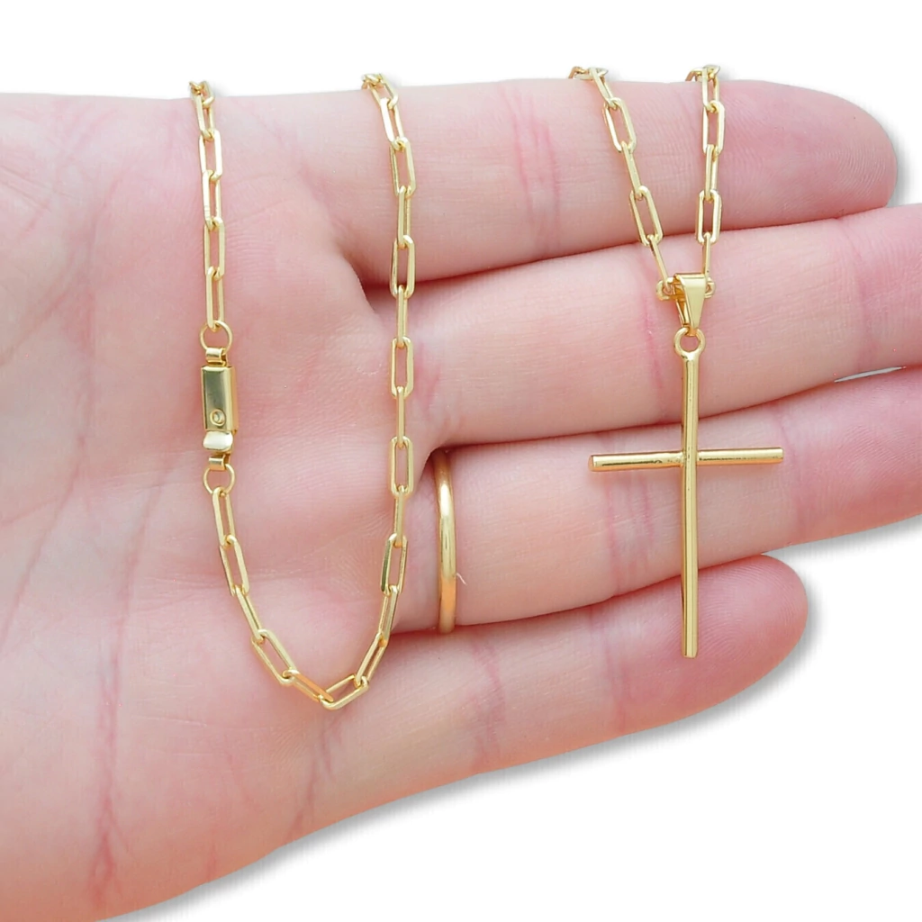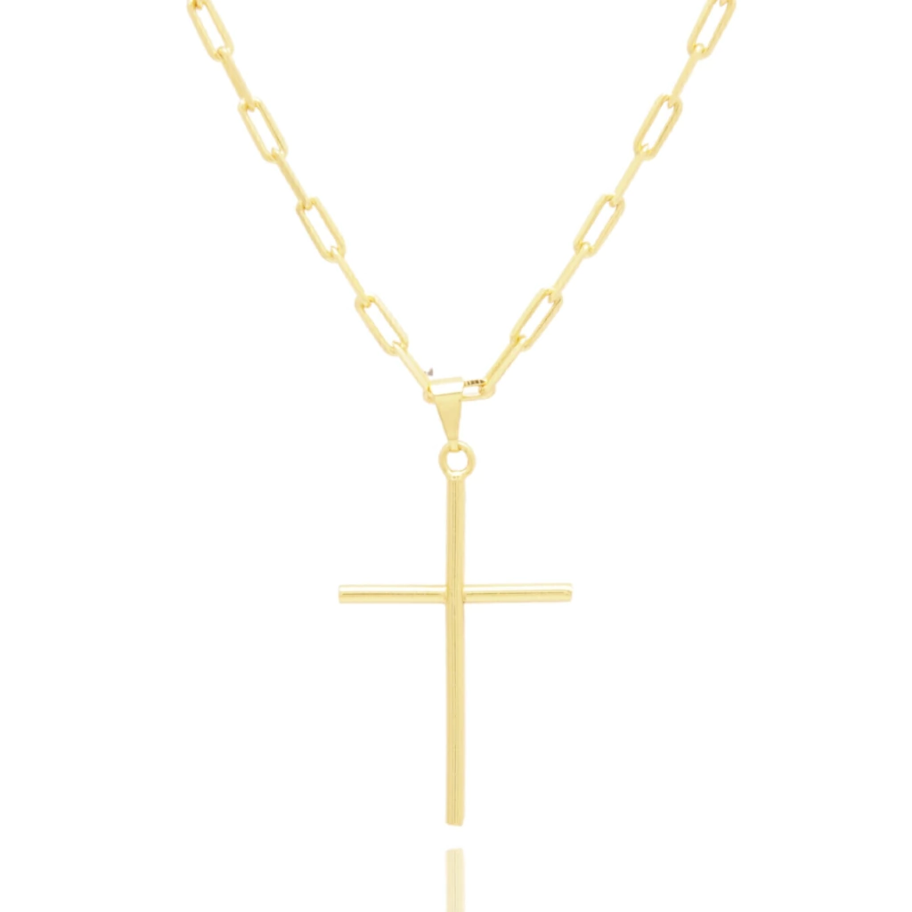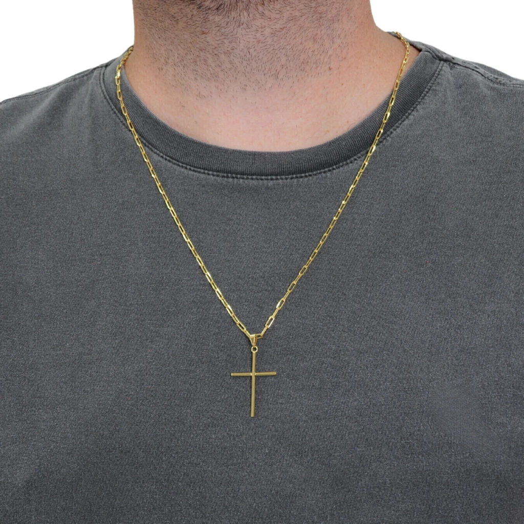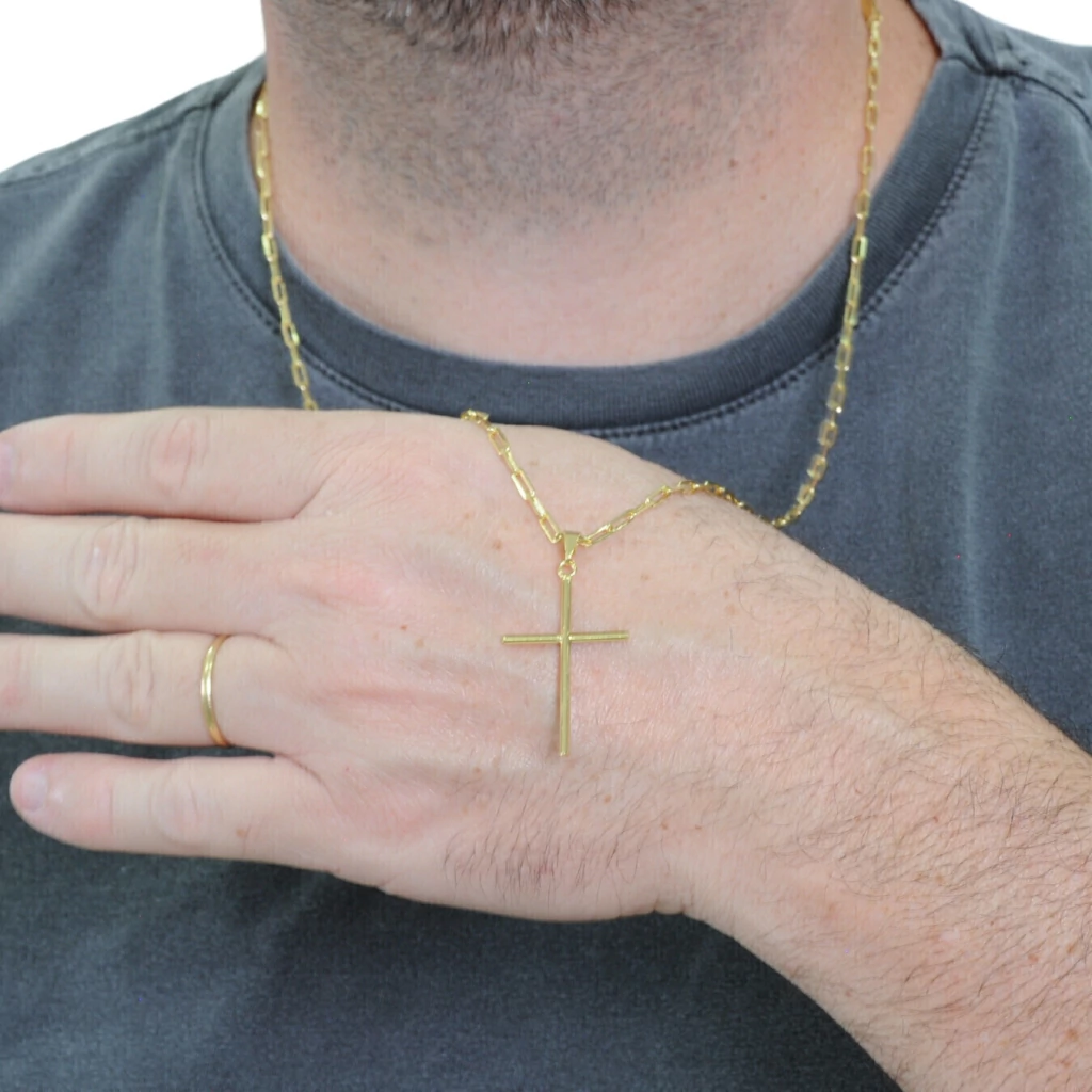Corrente Cordão Masculina Cartie Pingente Cruz Palito Banhado Ouro 18k