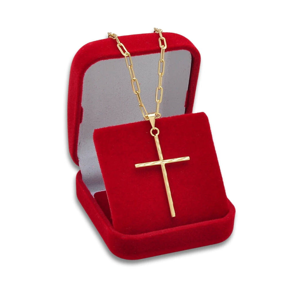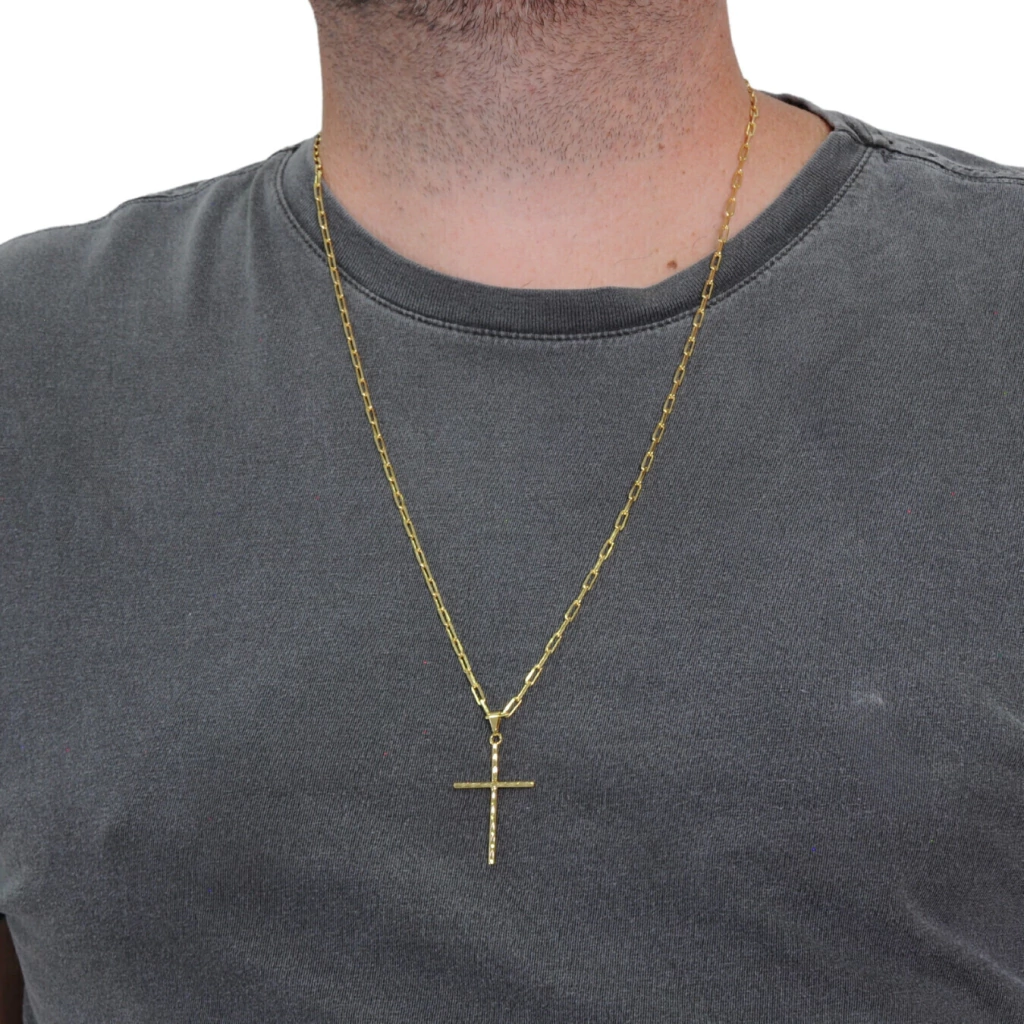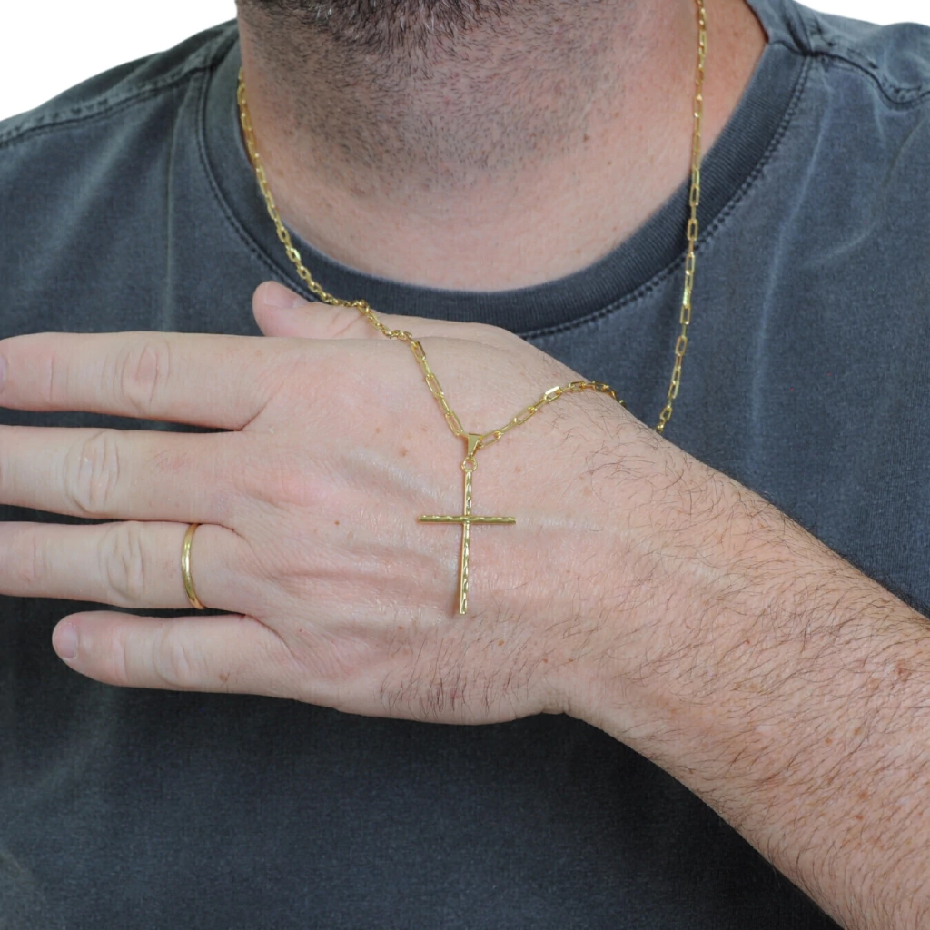 Corrente Cordão Masculina Pingente Crucifixo Cruz Palito Diamantada Palito Banhado Ouro 18k