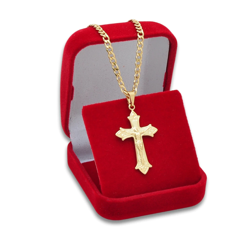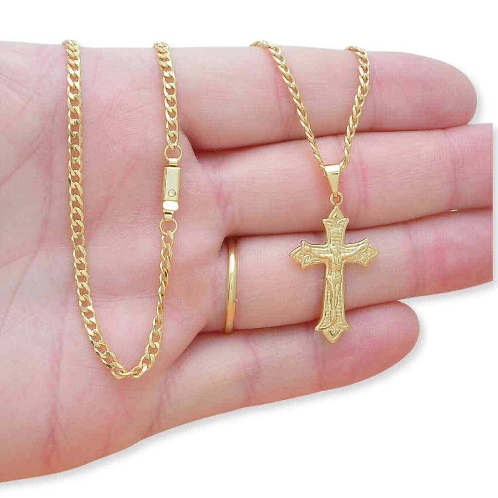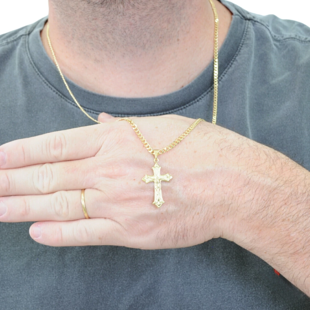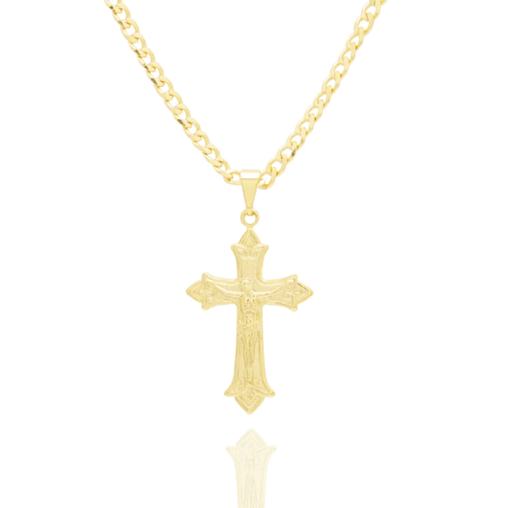 Corrente Masculina Grumet 60cm Pgt Crucifixo Banhado Ouro