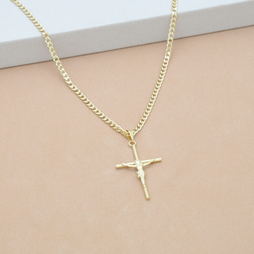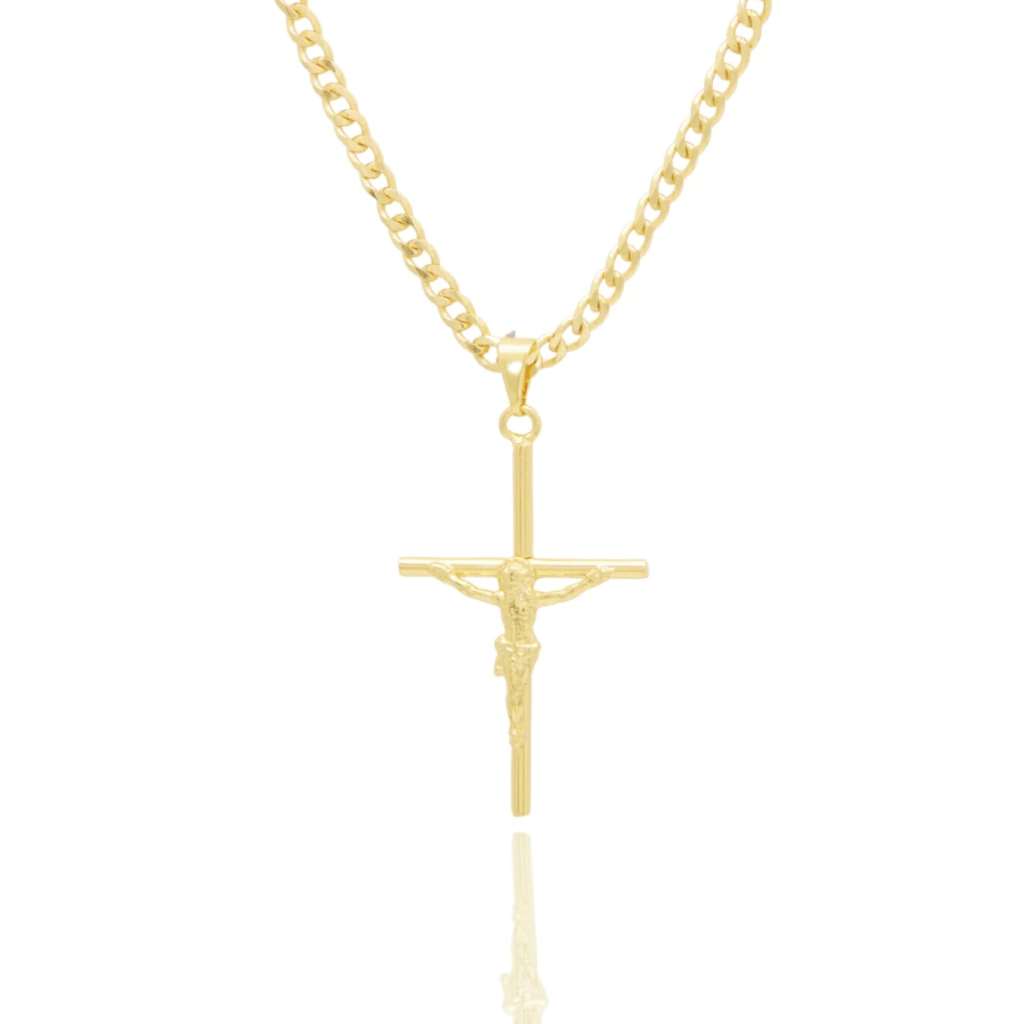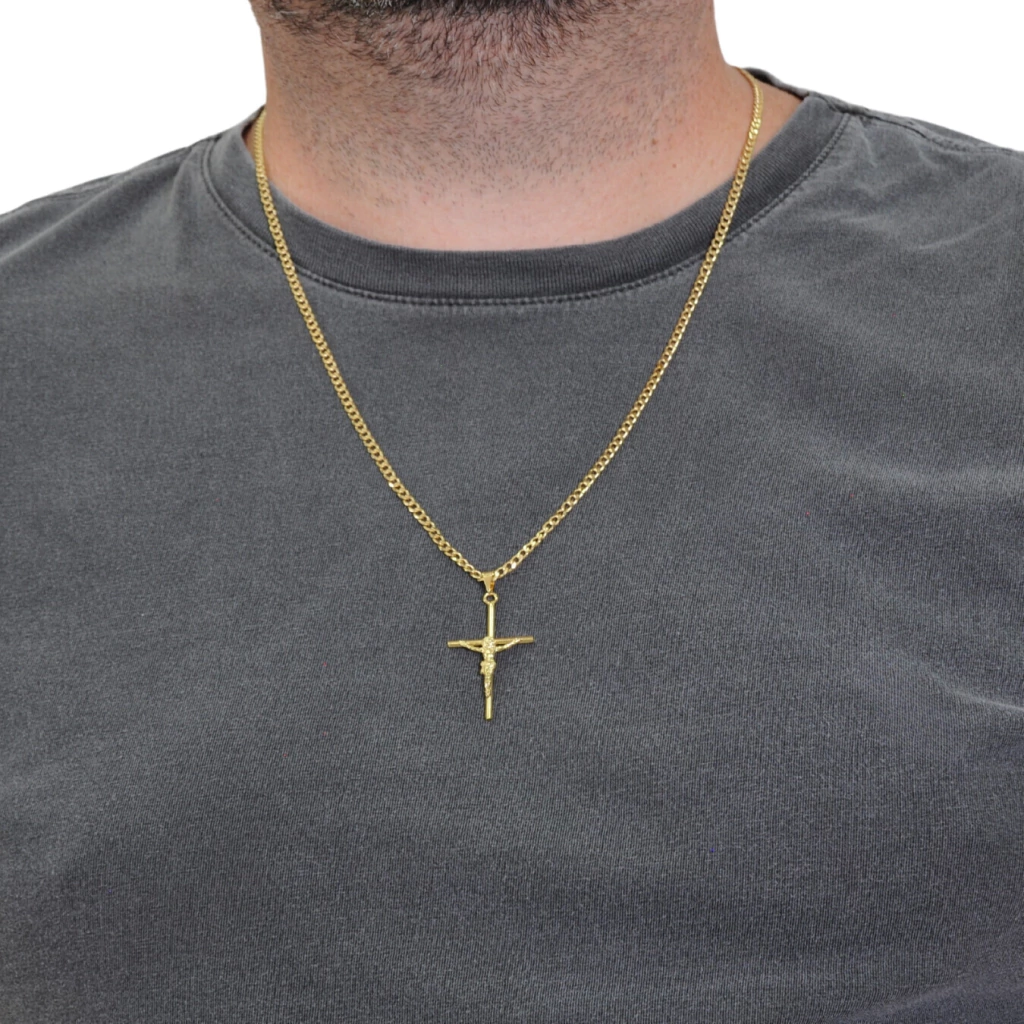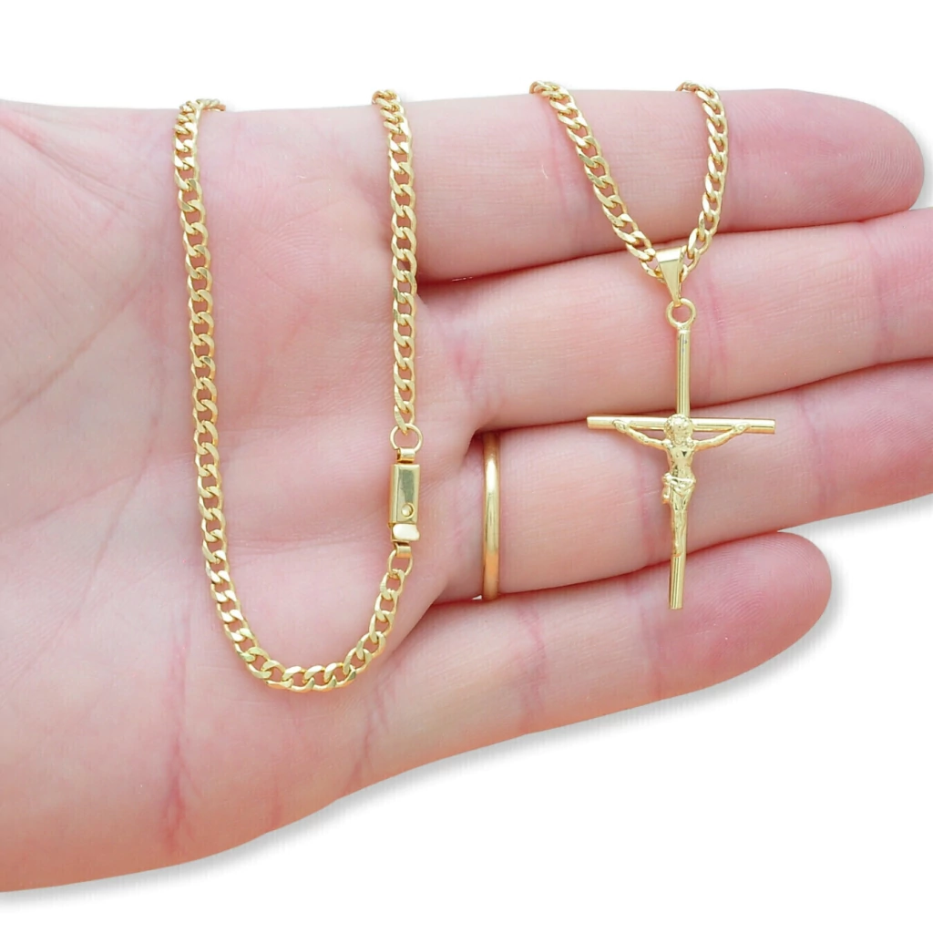 Cordão Banhado Ouro Masculino Pingente Cruz Crucifixo Jesus