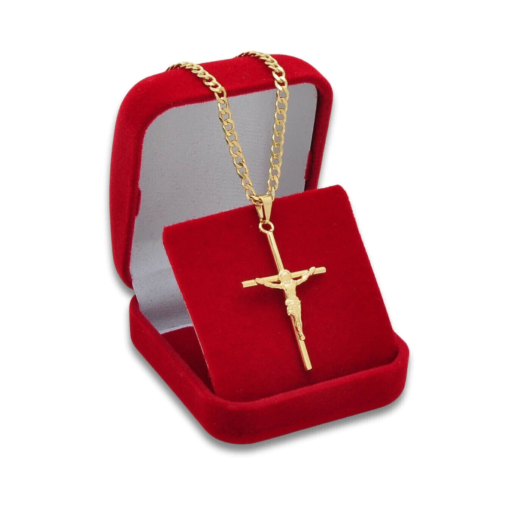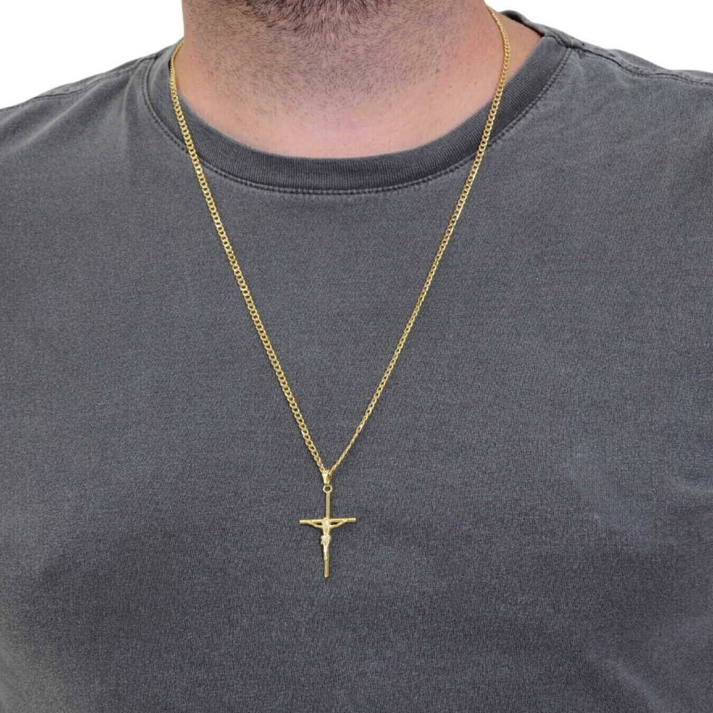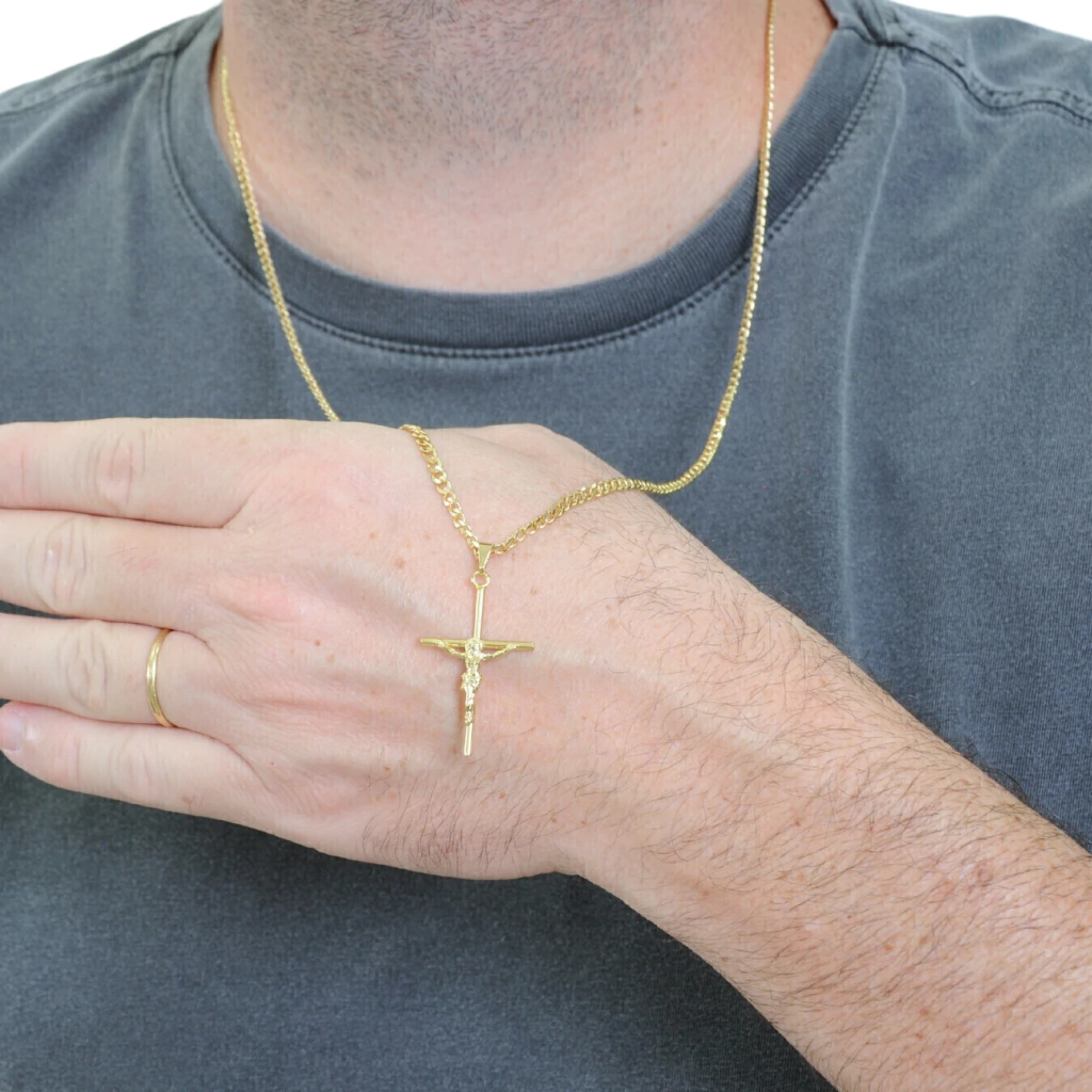 Pingente Crucifixo Corrente 70cm Banhado Ouro Com 10 Camadas