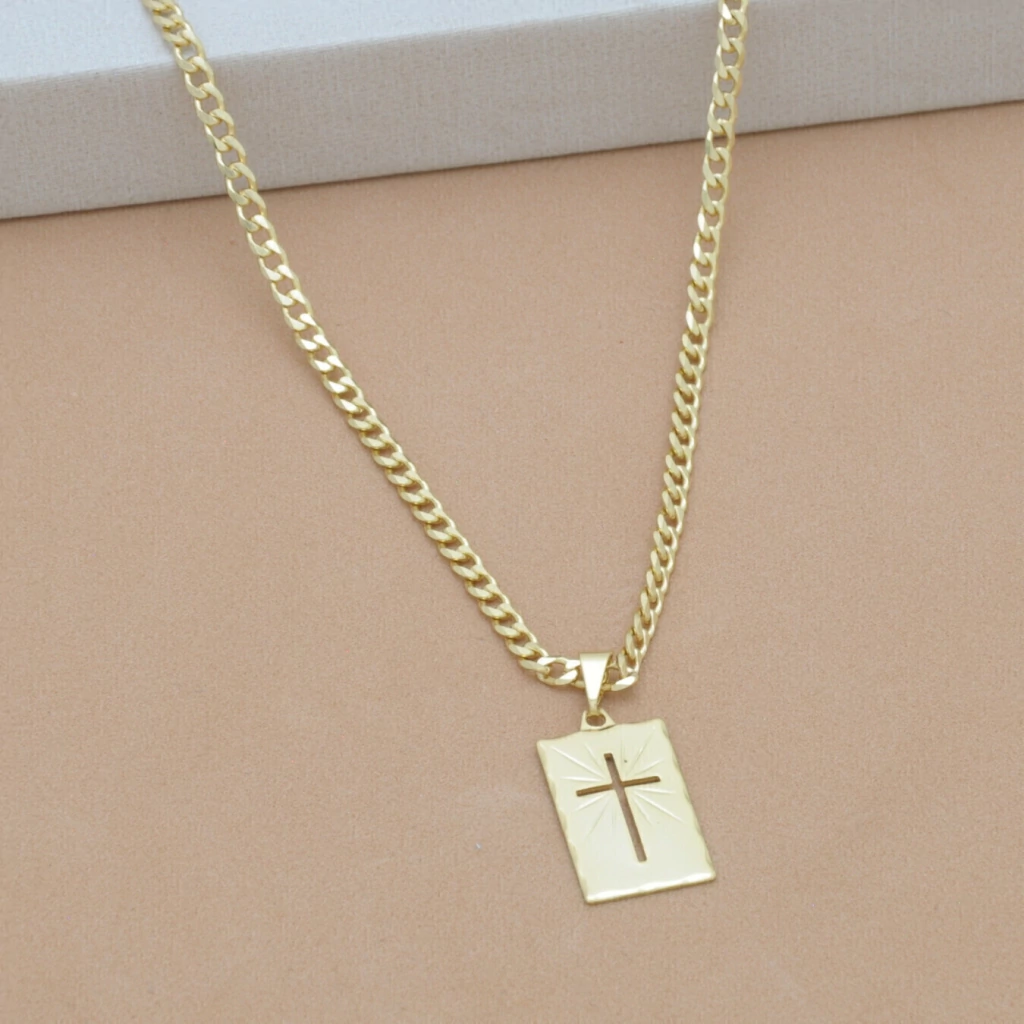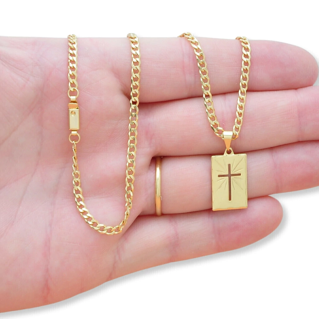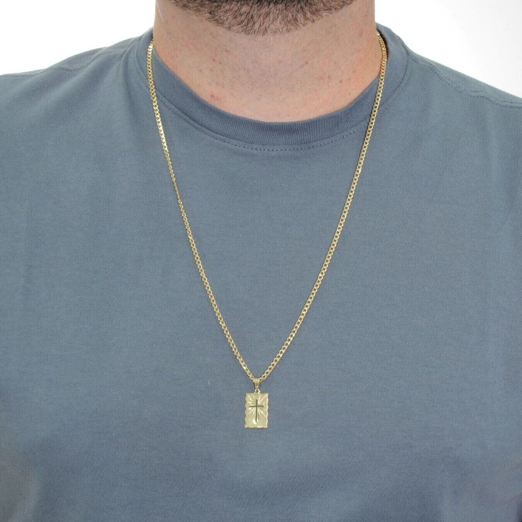 Corrente Masculina Pingente Cruz Banhado Ouro 18k 10 Camadas