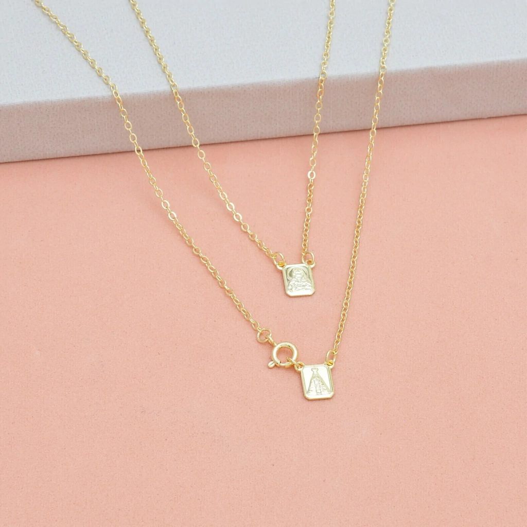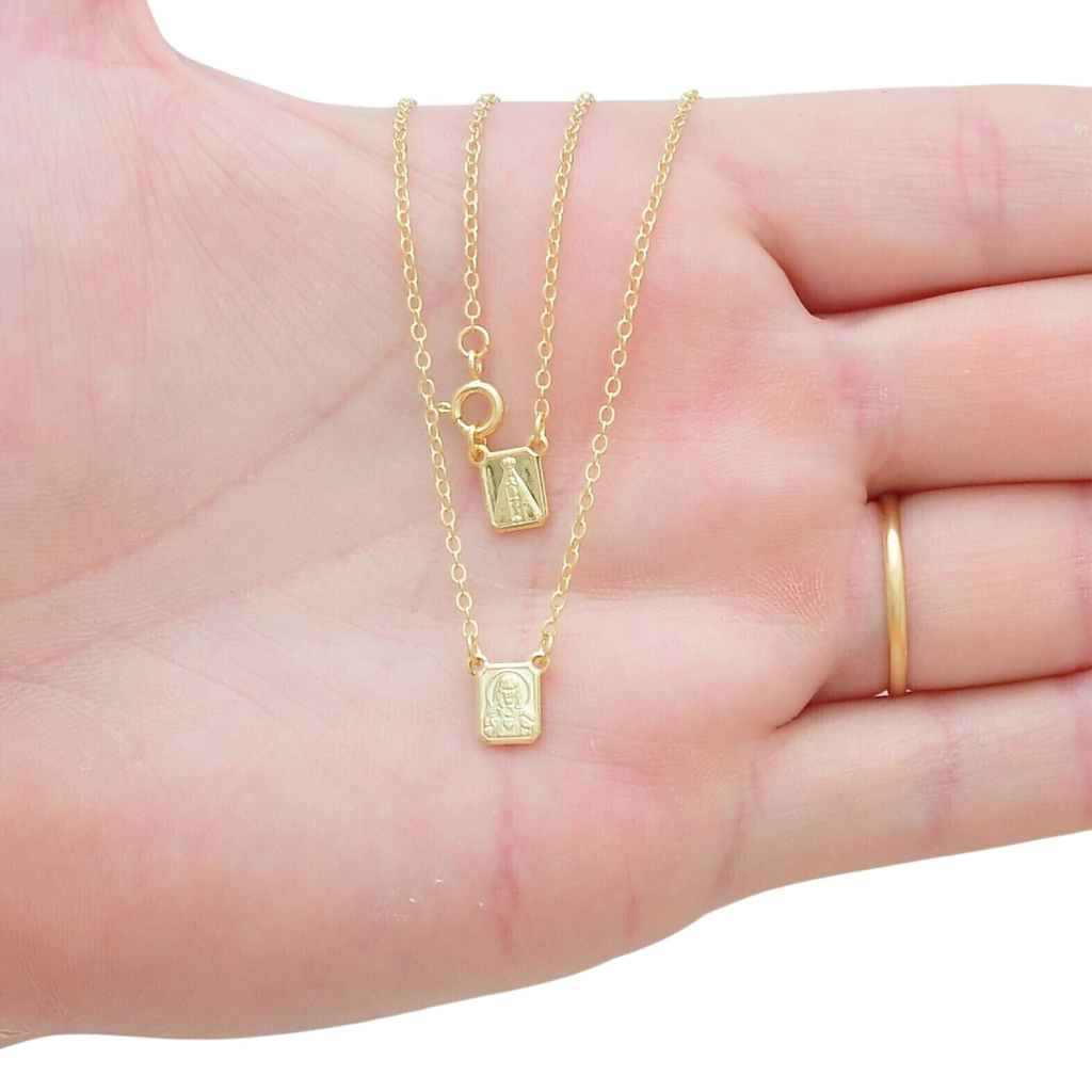 Escapulario 45cm Nossa Senhora Aparecida e Jesus Banhado a Ouro 18k