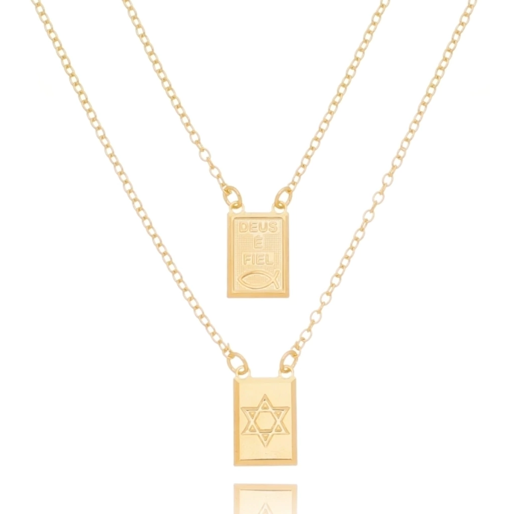 Escapulario Banhado a Ouro 18k Estrela de Davi e Deus é Fiel