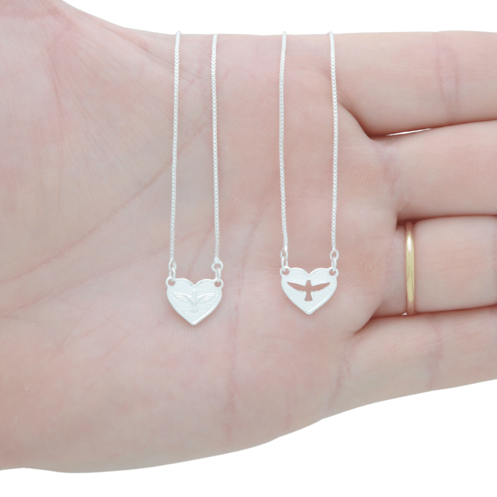 Escapulario Feminino Espirito Santo Coração Banhado a Prata 925