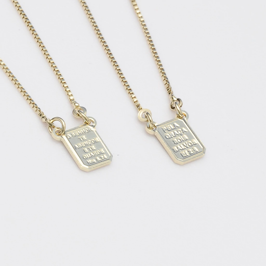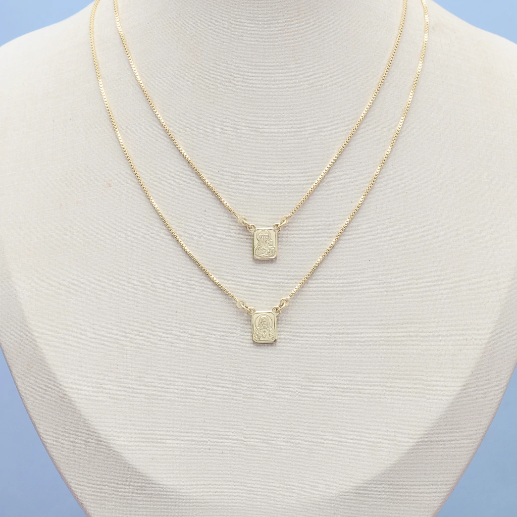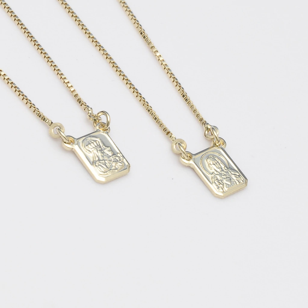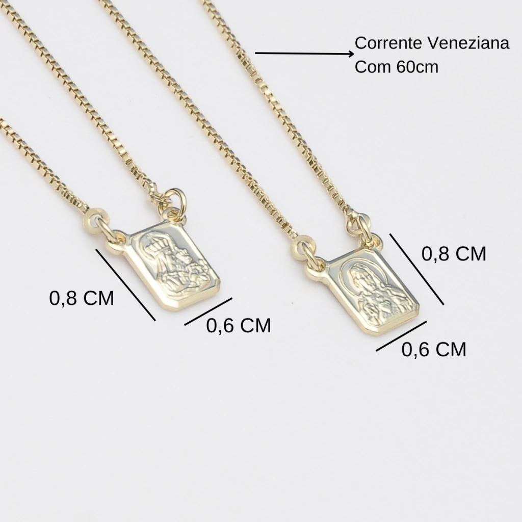 Escapulário Nossa Senhora do Carmo e Sagrado Coração 60cm Banhado a Ouro 18k