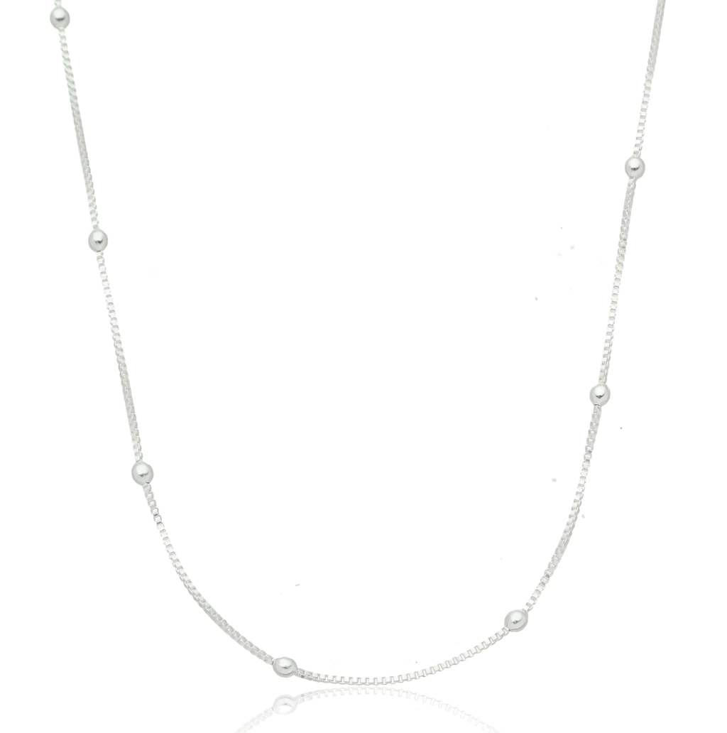 Colar Corrente Feminino com Bolinhas Banhado a Prata 925 40cm + 5cm ExtensorColar Corrente Detalhes Coração Banhado a Prata 925 40cm + 5cm Extensor