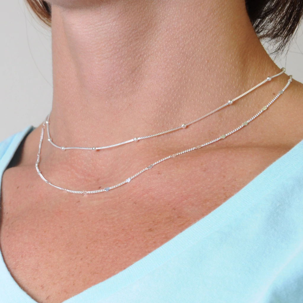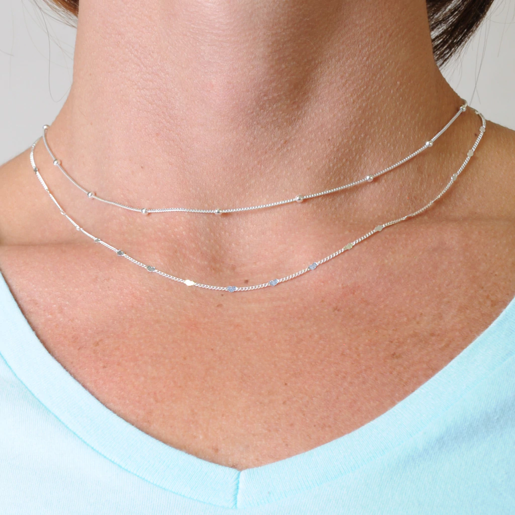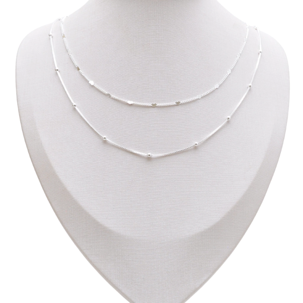 Kit 02 Colares Bolinha 40cm + Detalhe 40cm Banhado Prata 925