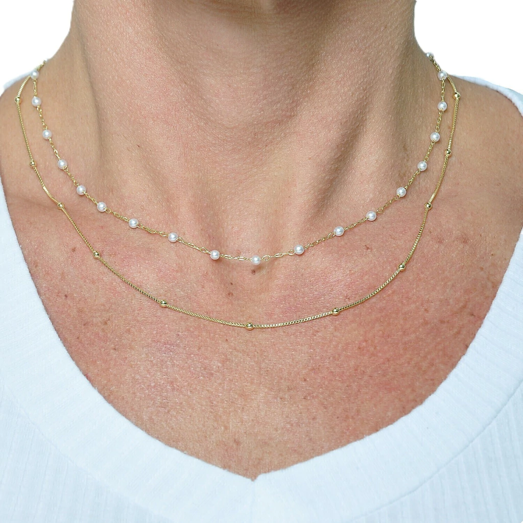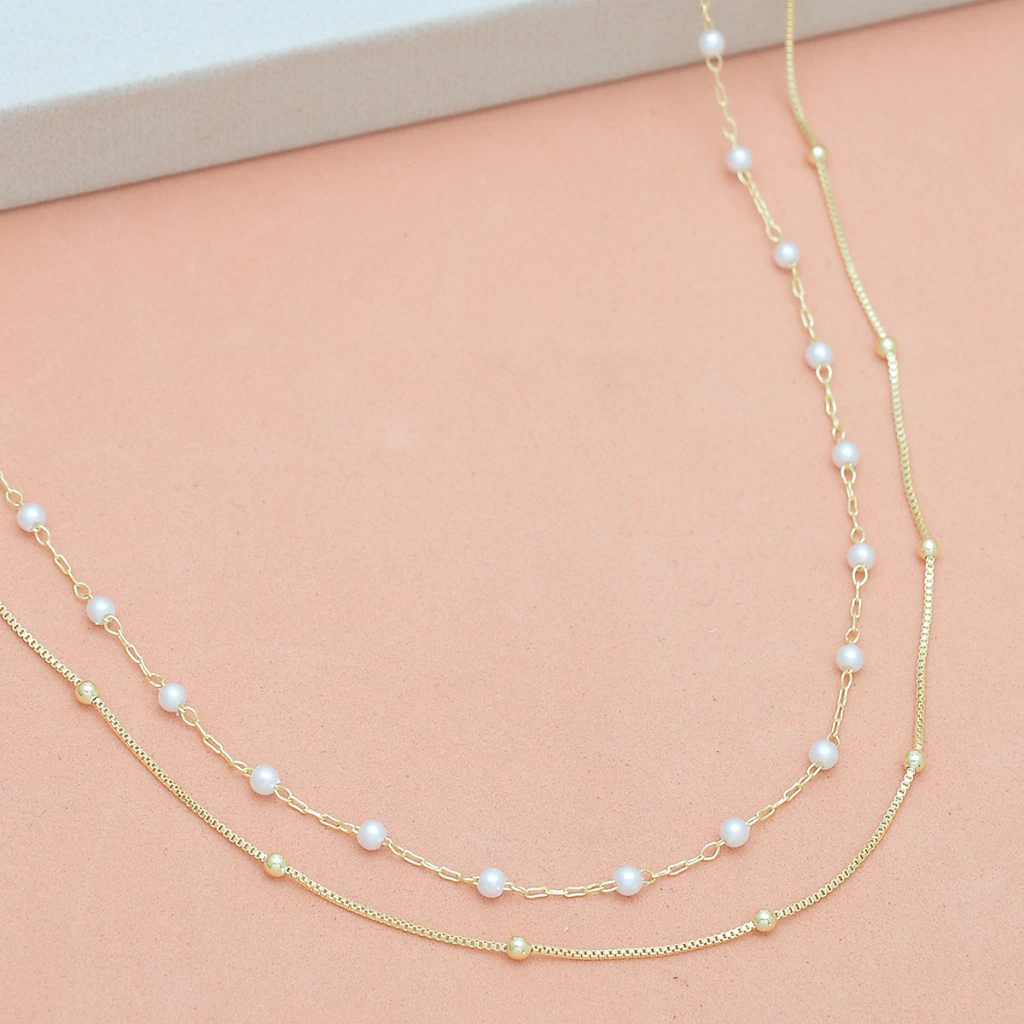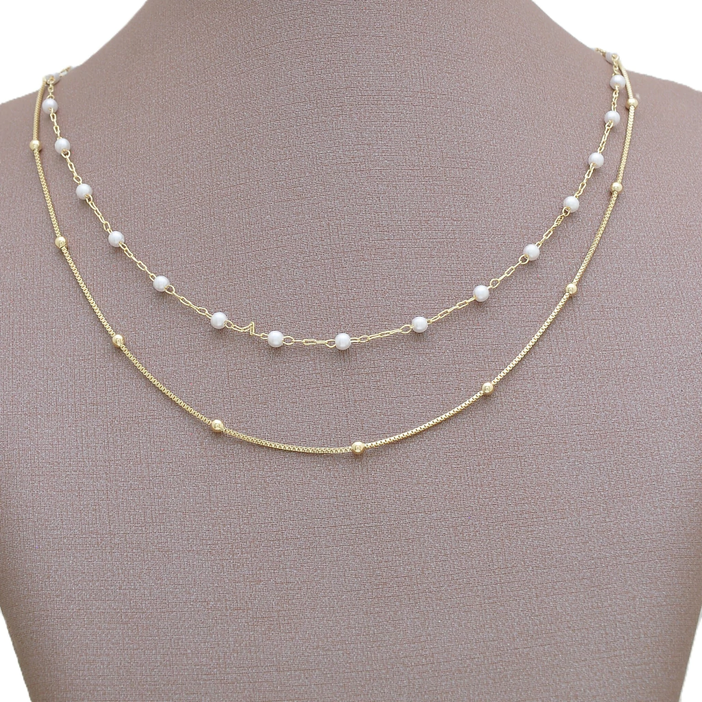 Kit 02 Colares Bolinha 40cm + Perola 40cm Banhado a Ouro 18k