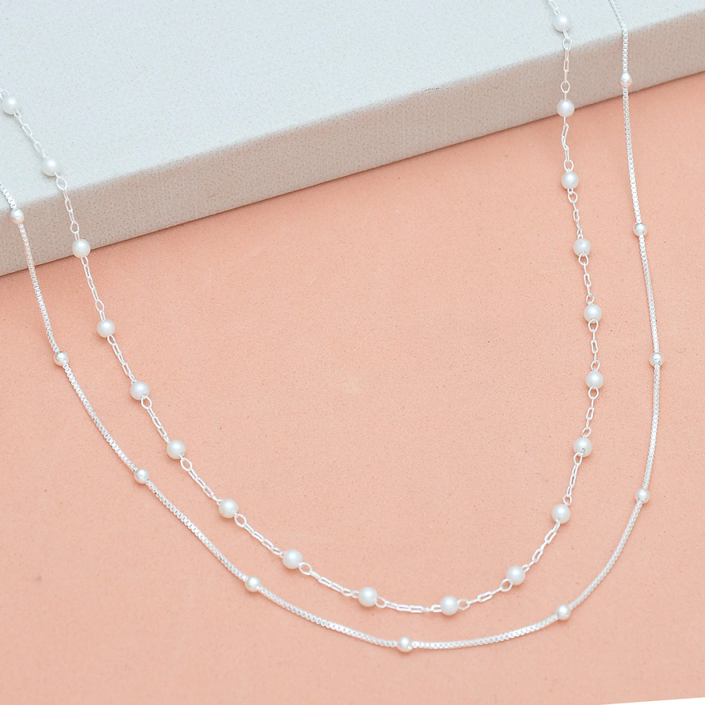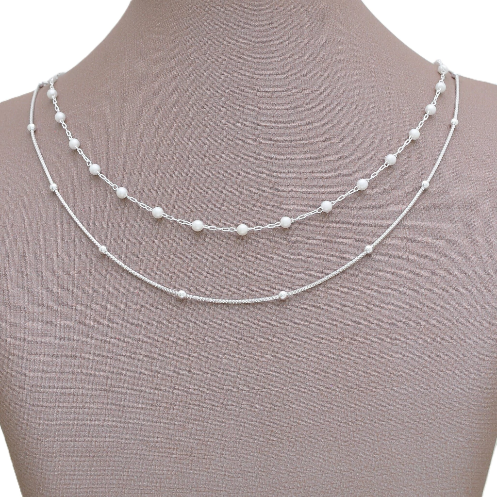 Kit 02 Colares Bolinha 40cm + Perola 40cm Banhado a Prata 925