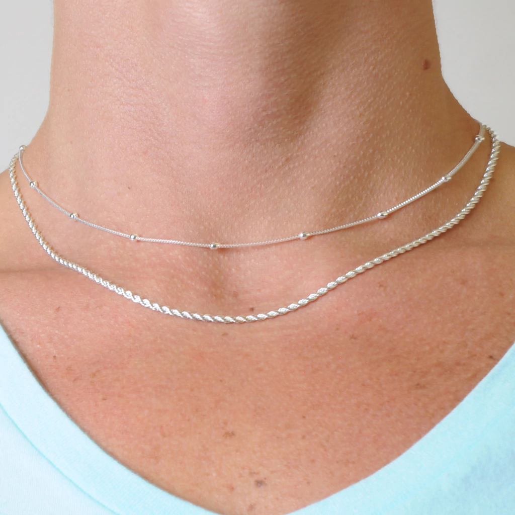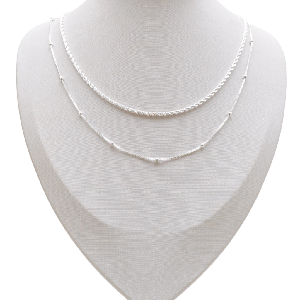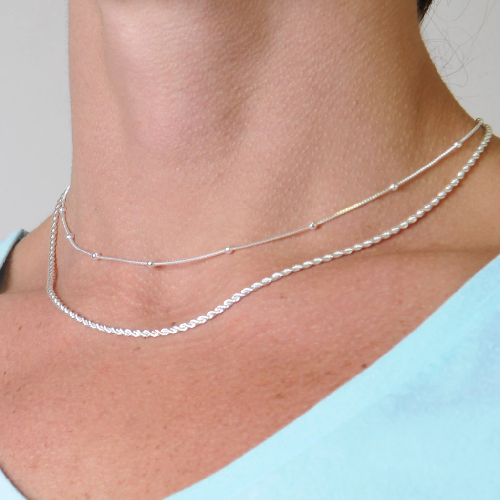 Kit 02 Colares Bolinhas 40cm + Baiano 40cm Banhado Prata 925