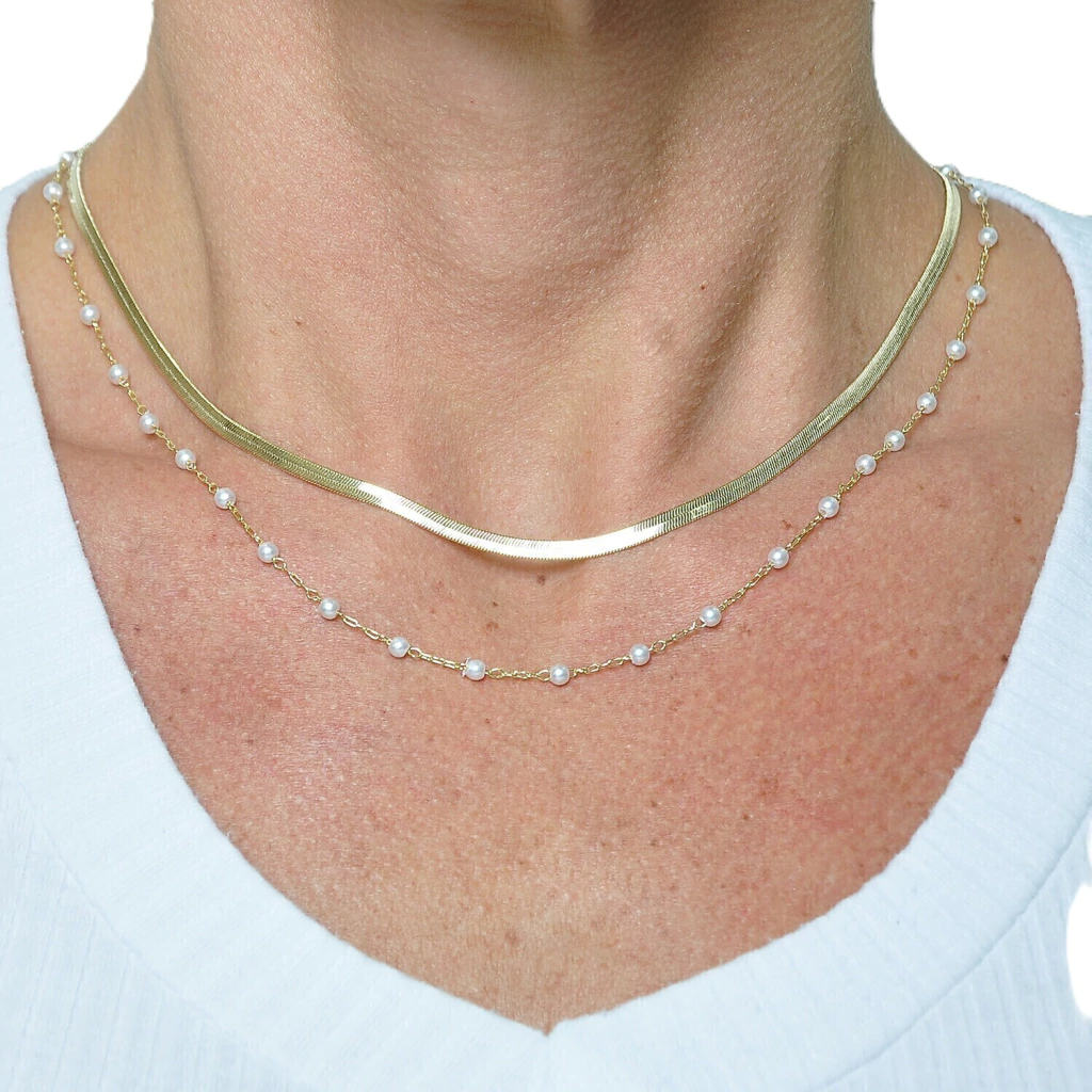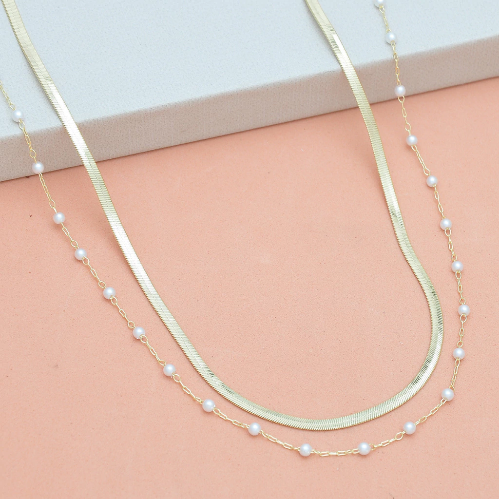Kit 02 Colares Fita 40cm + Perola 40cm Banhado a Ouro 18k