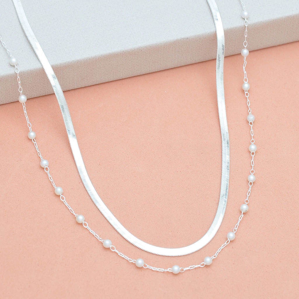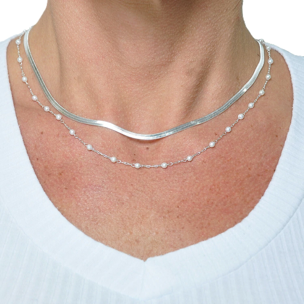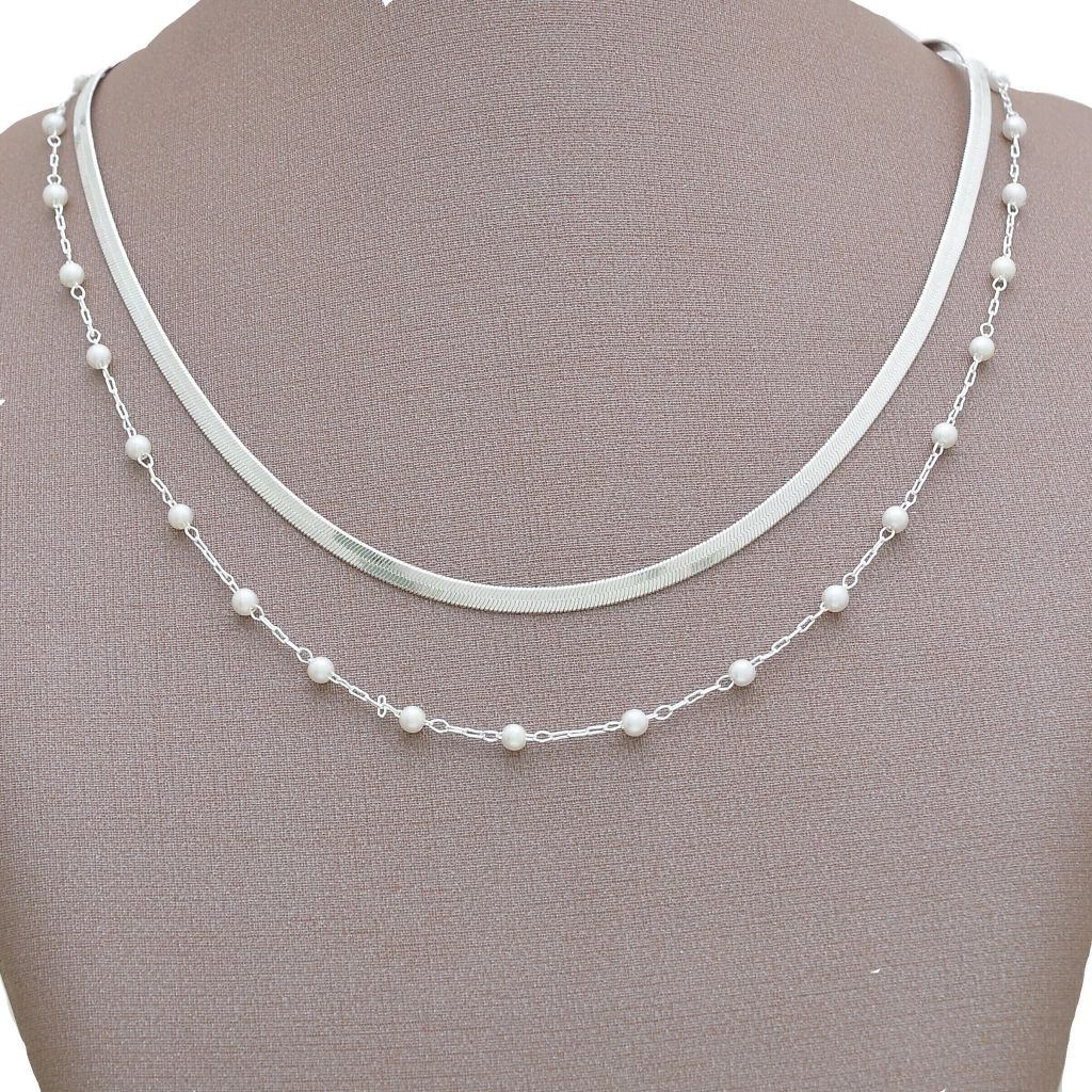 Kit 02 Colares Fita 40cm + Perola 40cm Banhado a Prata 925