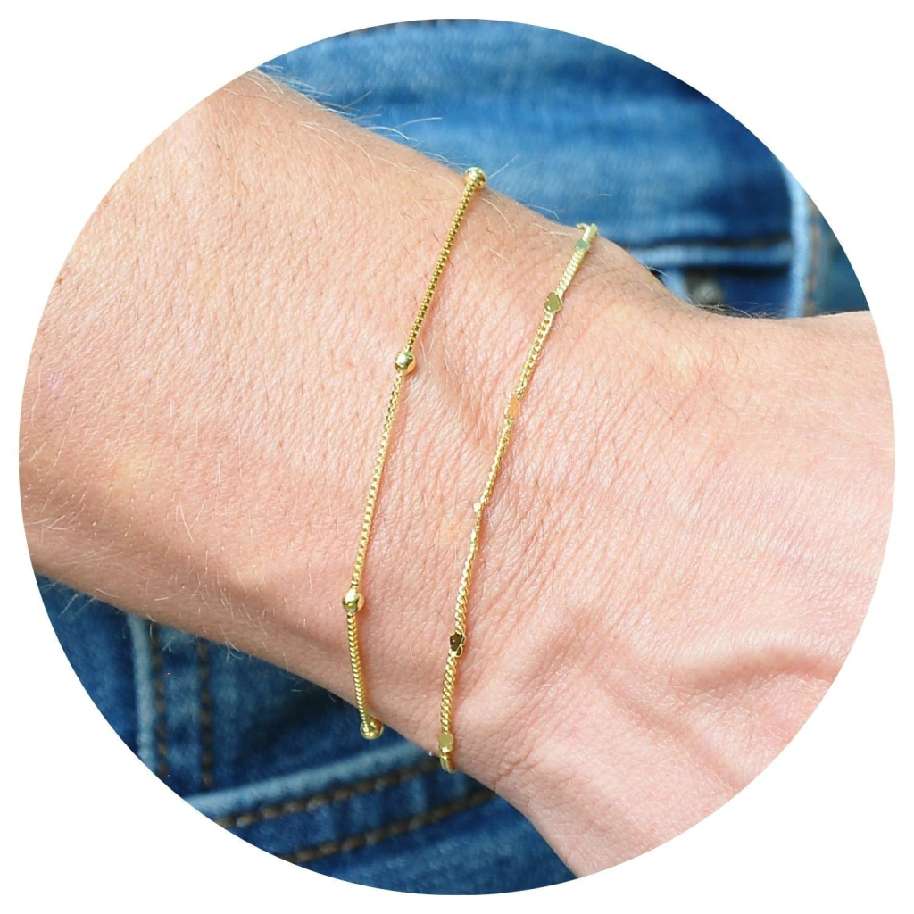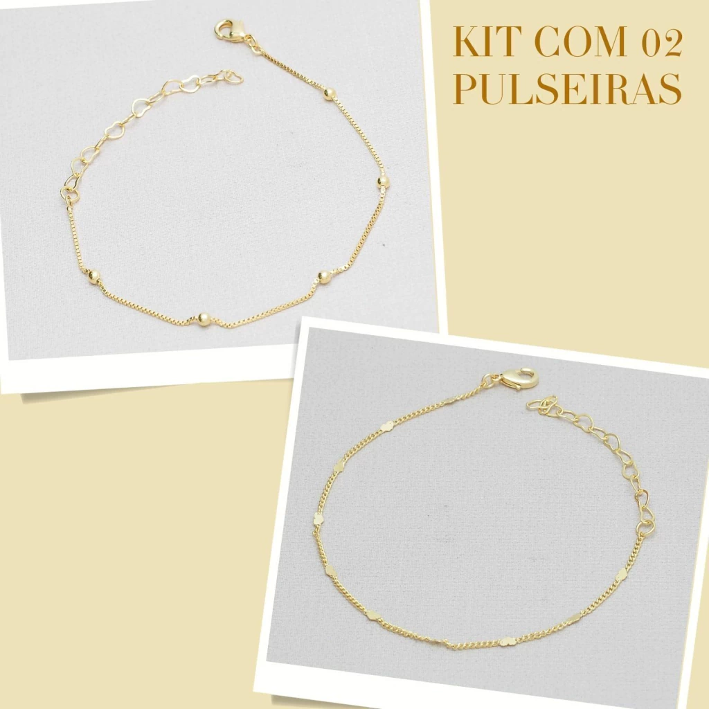 Kit 02 Pulseiras Bolinha + Detalhe Banhadas a Ouro