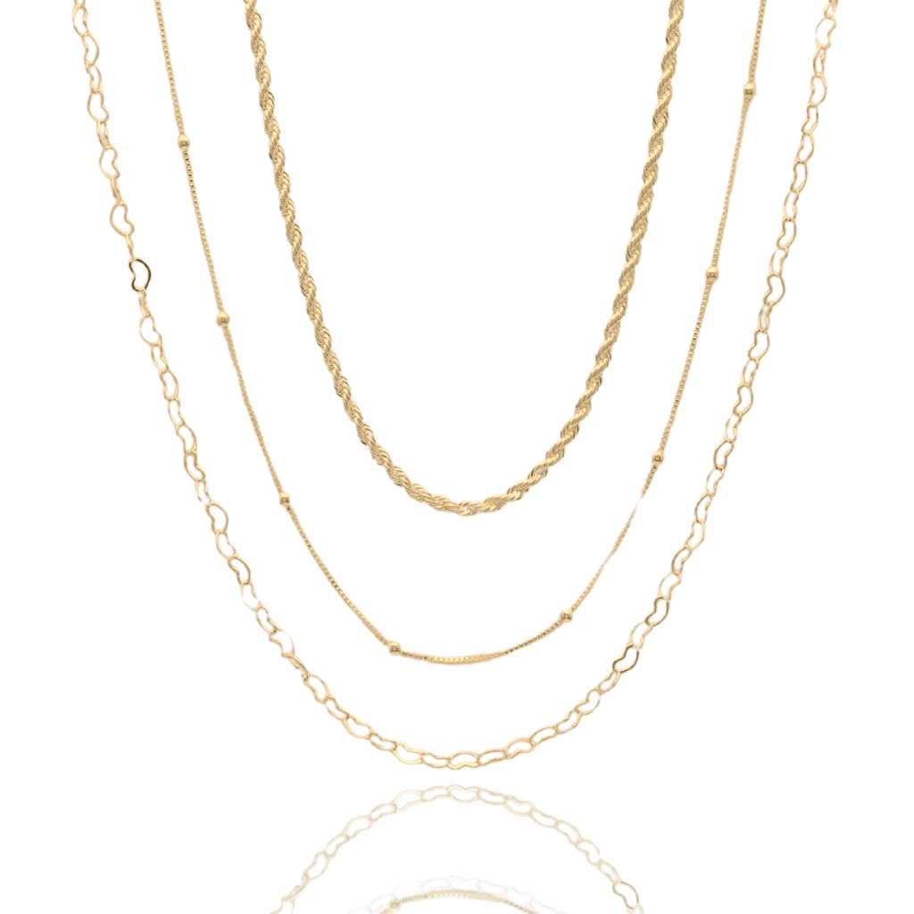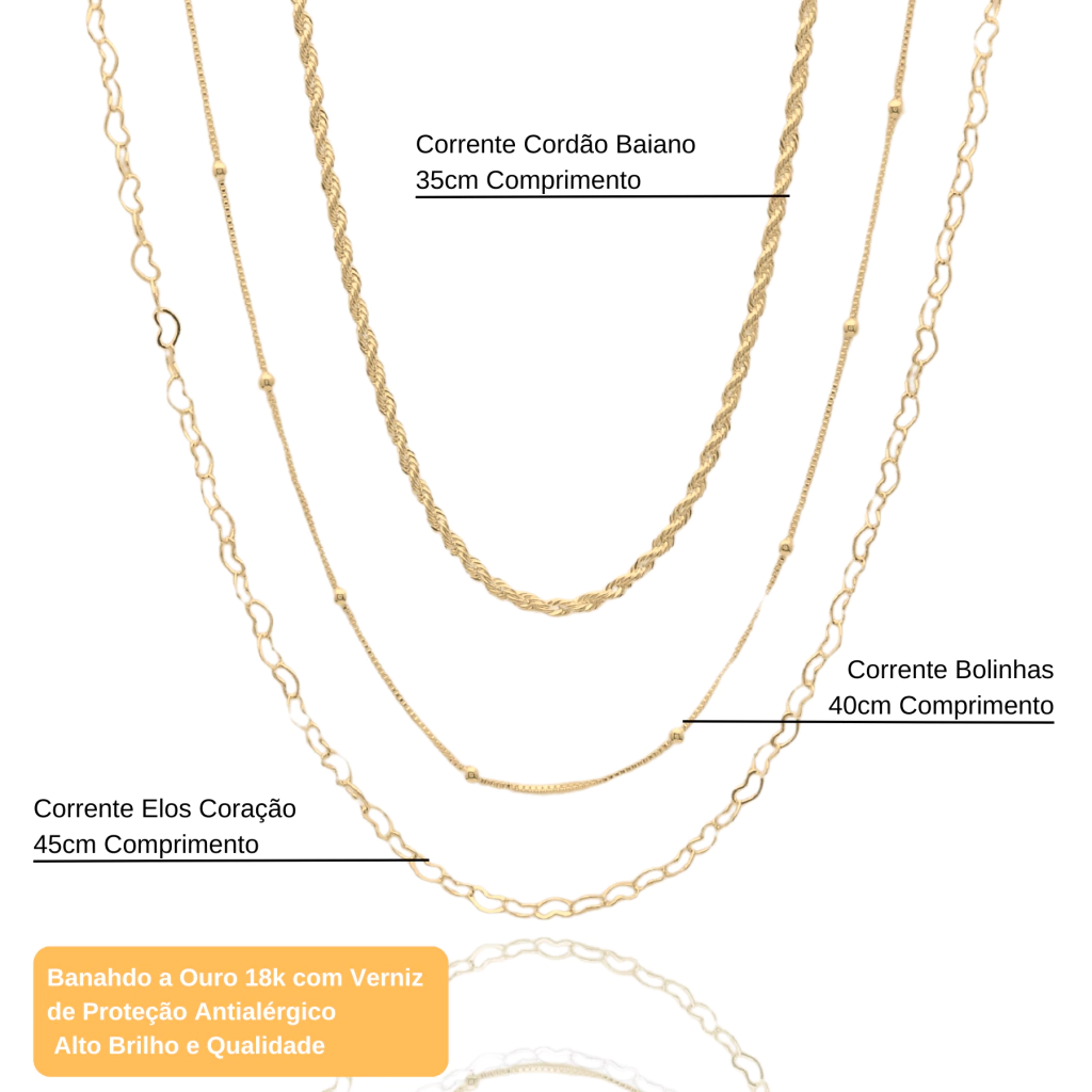 Colar Feminino Corações Banhado a Ouro 18k 45cm + 5cm Extensor