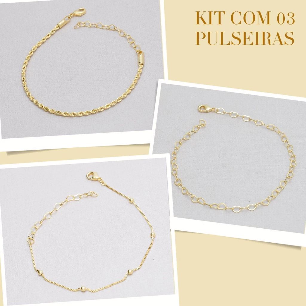 Kit com 03 Pulseiras Banhadas a Ouro 18k