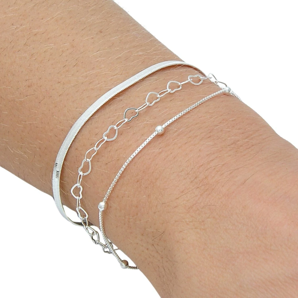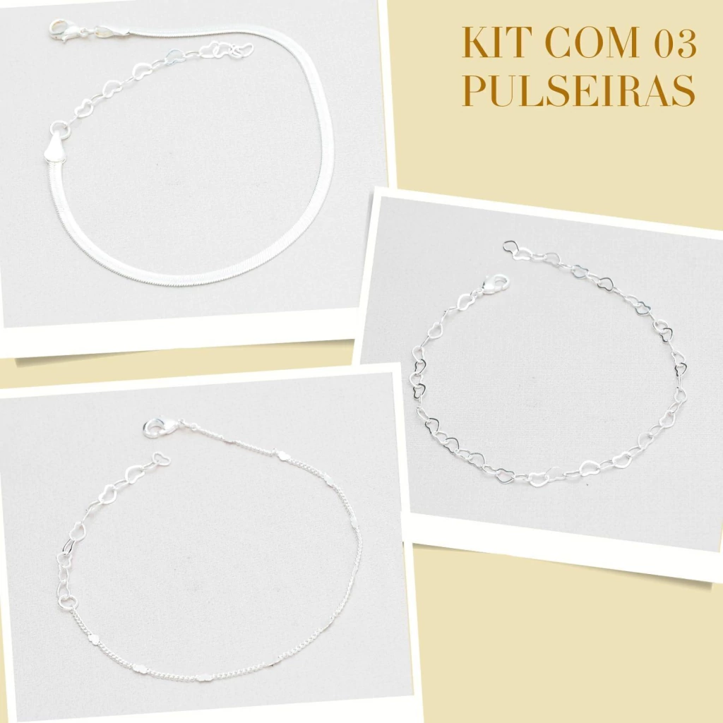 Kit com 03 Pulseiras Banhadas a Prata 925