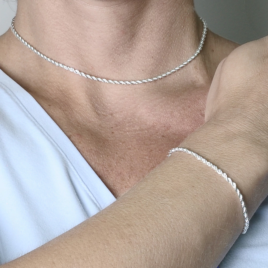 Kit Conjunto Colar Chocker e Pulseira Cordão Baiano Banhado a Prata 925