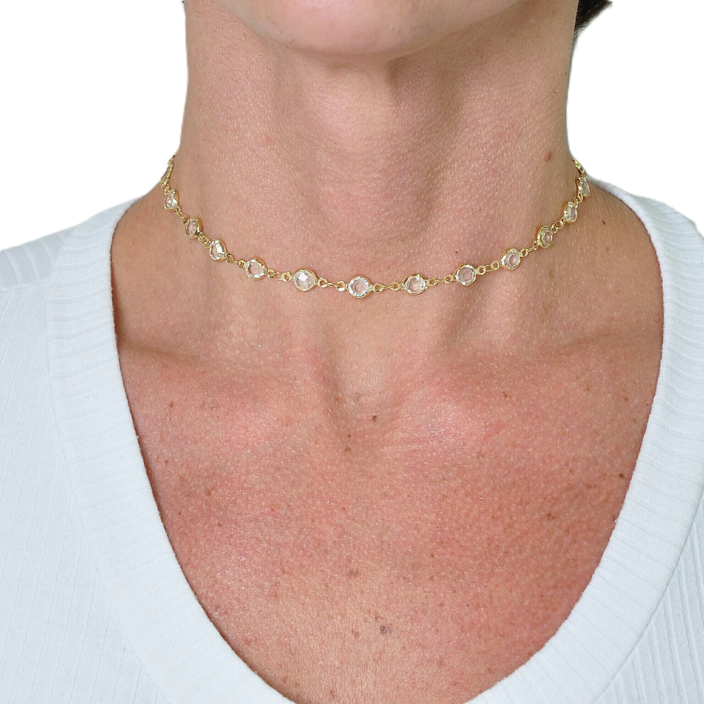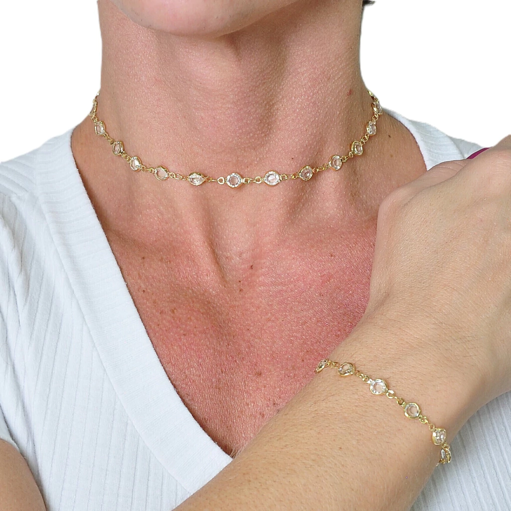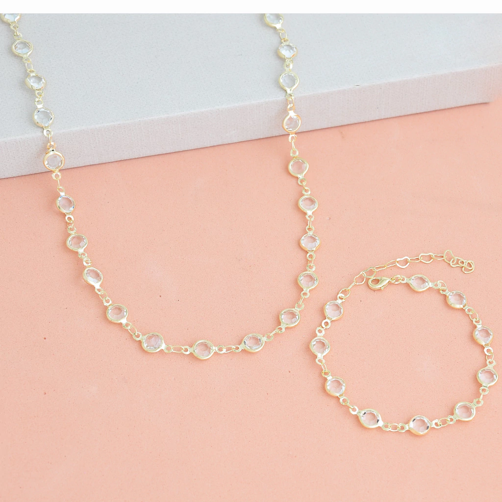 Kit Chocker + Pulseira Cristais 35cm Banhada a Ouro 18k