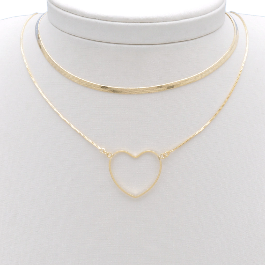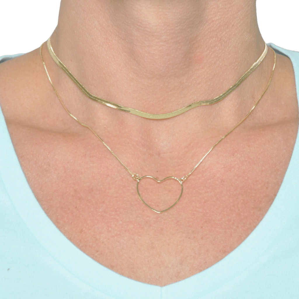 Kit Colar Fita 35cm + Colar Coração Banhada a Ouro 18k