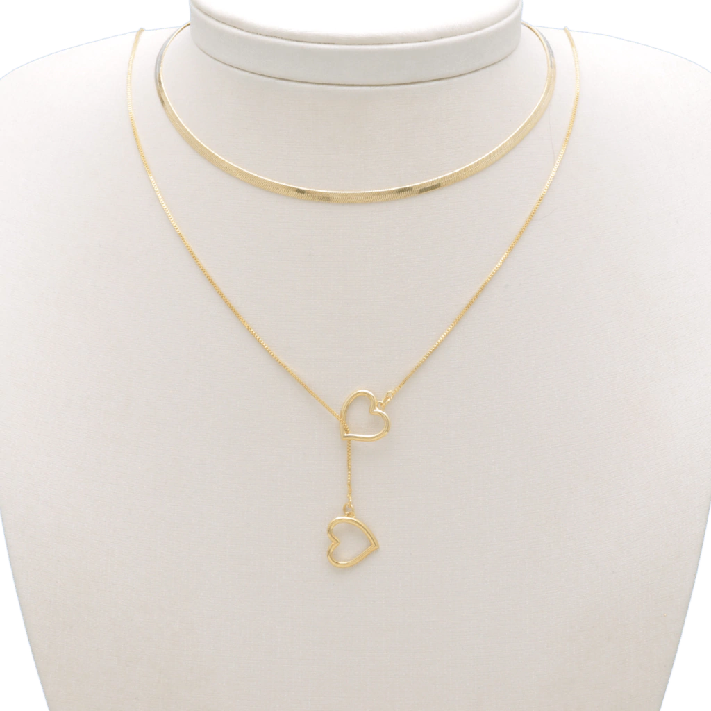Kit Colar Fita 35cm + Gravatinha Coração Banhada a Ouro 18k