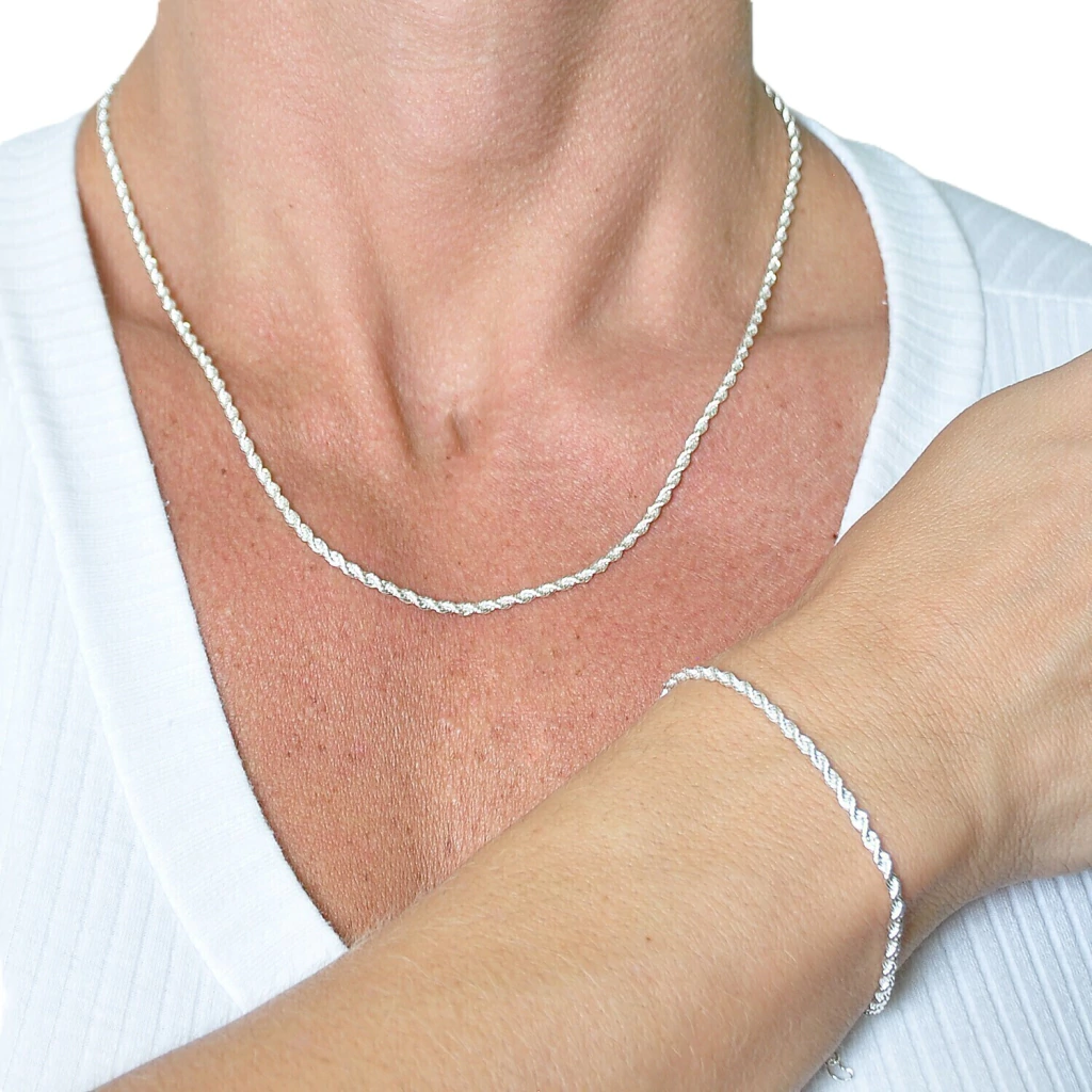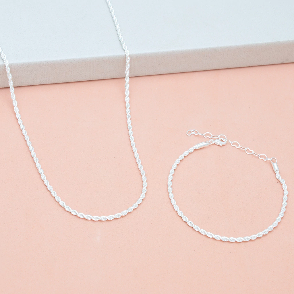 Conjunto Cordão Baiano Colar 45cm + Pulseira Banhado a Prata 925