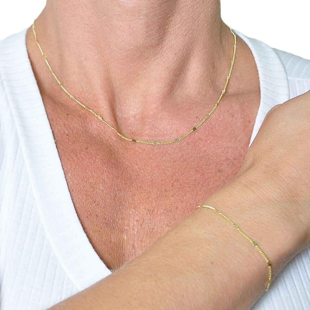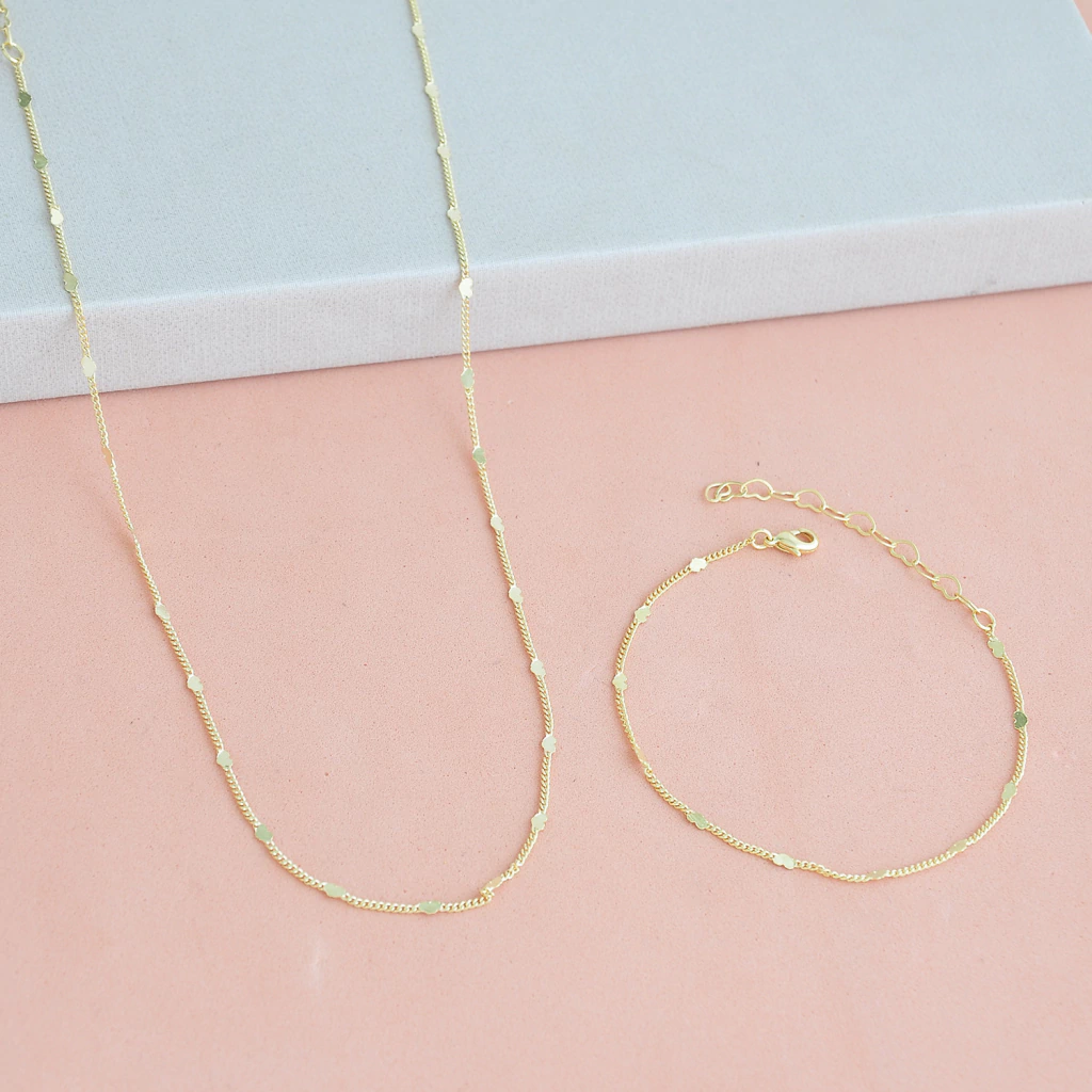 Conjunto Detalhe Colar 45cm + Pulseira Banhado a Ouro 18k